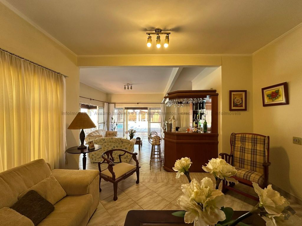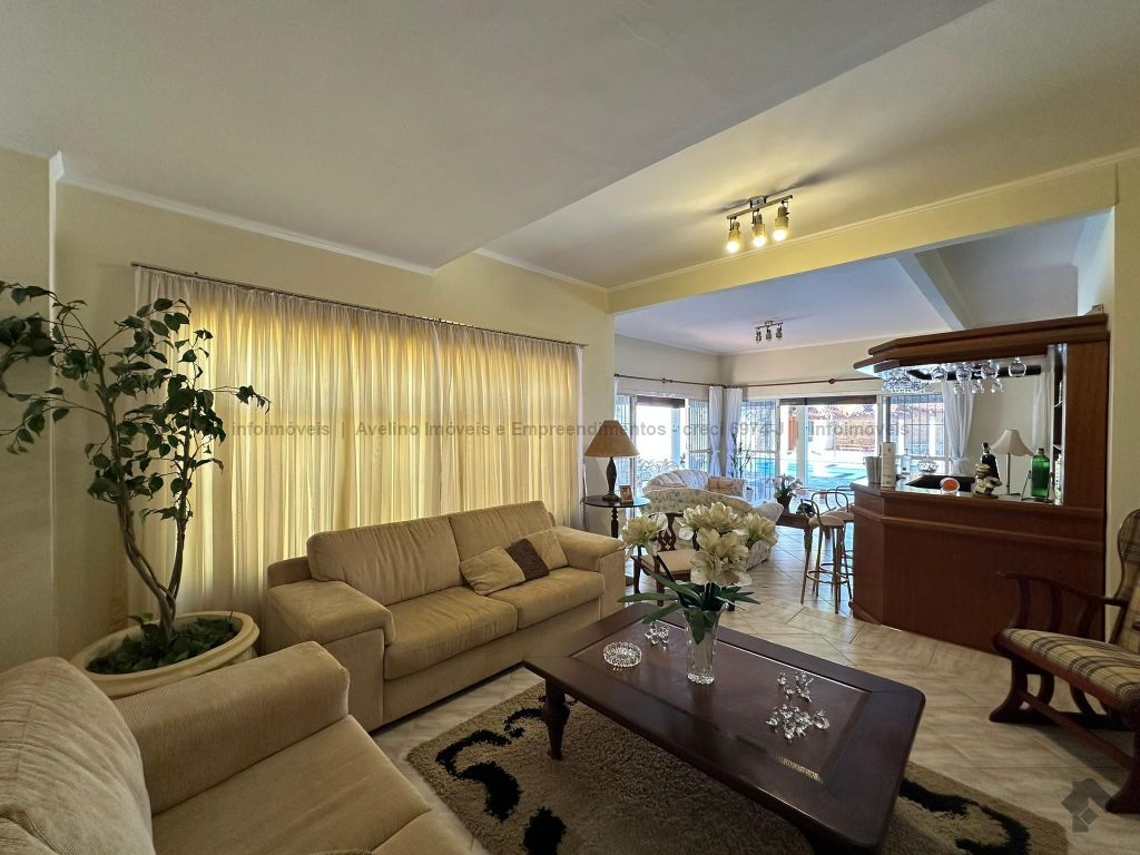 Terreno amplo de 900 m² e área construída de aproximadamente 500 m². Destaques do imóvel: garagem coberta para até 4 veículos, sala de visitas elegante, lavabo social, sala de jantar espaçosa, sala de TV, sala de estar com vista deslumbrante para o jardim e a piscina, jardim de inverno aconchegante, cozinha ampla e funcional, totalmente separada das áreas sociais, área de serviço generosa, com quarto e banheiro de apoio. Distribuição dos quartos: piso inferior: 1 suíte e 2 quartos muito espaçosos.