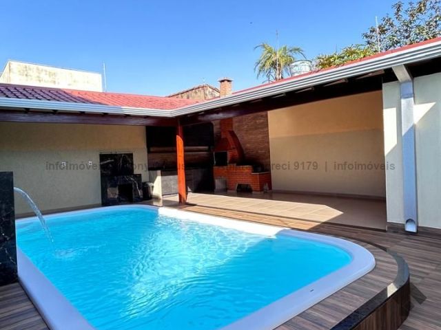 Sobrado usado no Jardim Pênfigo. Sala ampla, cozinha planejada, 3 quartos, sendo um suíte com ar condicionado, área gourmet rústica planejada e fogão à lenha, piscina, sacada, sala no segundo andar e garagem. 197 m² construída e 200 m² total.
