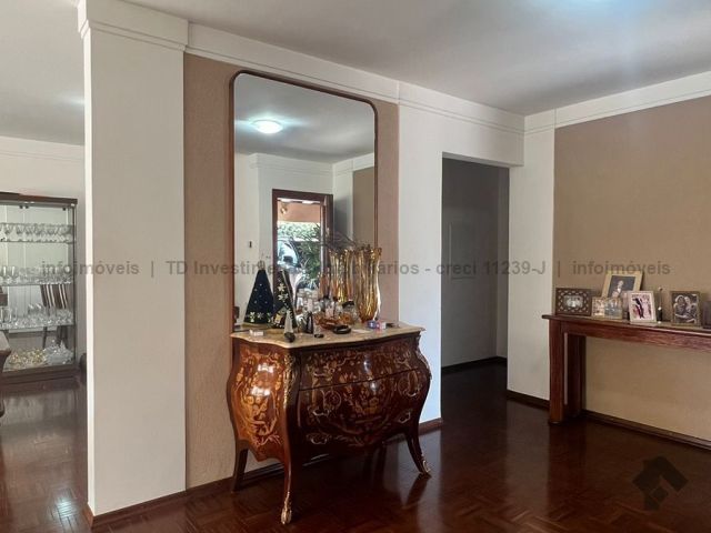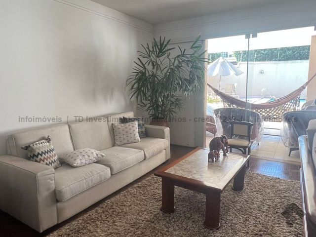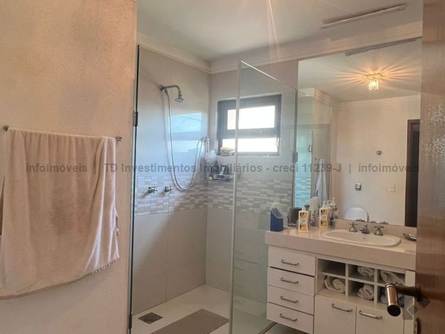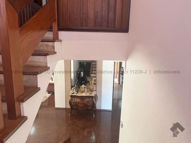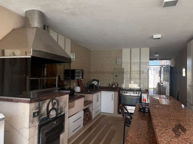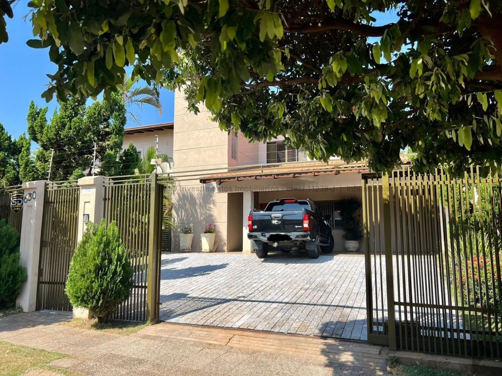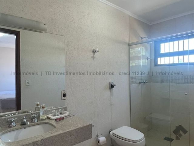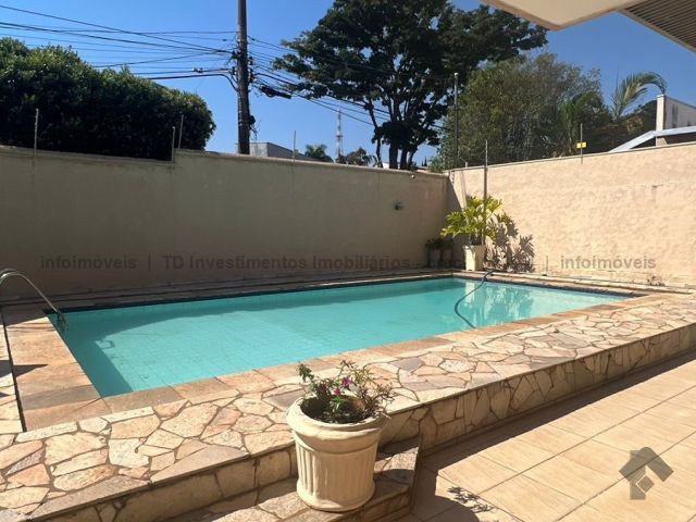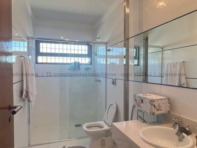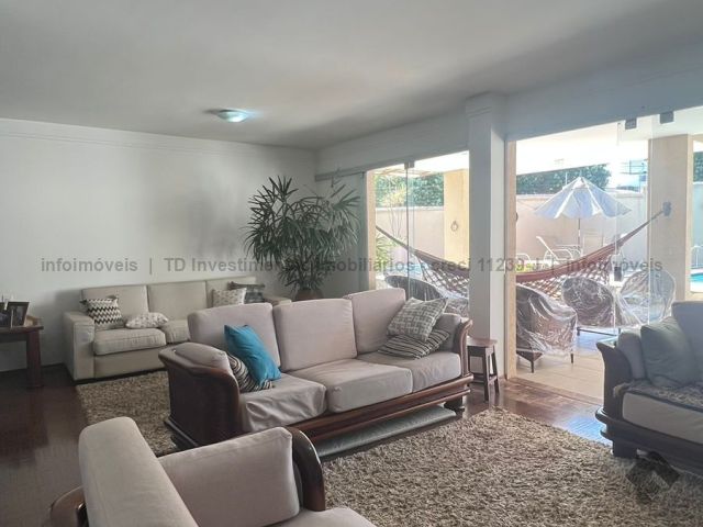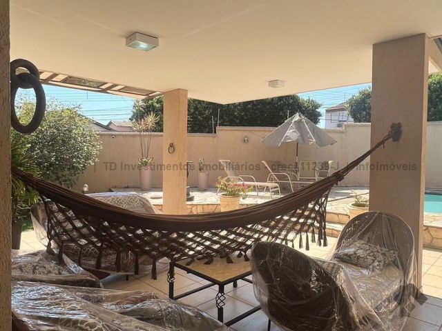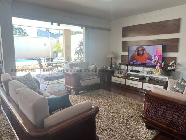 Sobrado imenso com 4 suítes no andar superior e sala de tv, salas integradas de jantar, estar, home teacher e varanda, área gourmet com churrasqueira, forno e fogão a lenha, piscina enorme e jardim, cozinha, lavanderia, banheiro de serviço, escritório, lavabo e mais uma sala ou loja independente com banheiro, podendo ser transformada na 5 suíte.