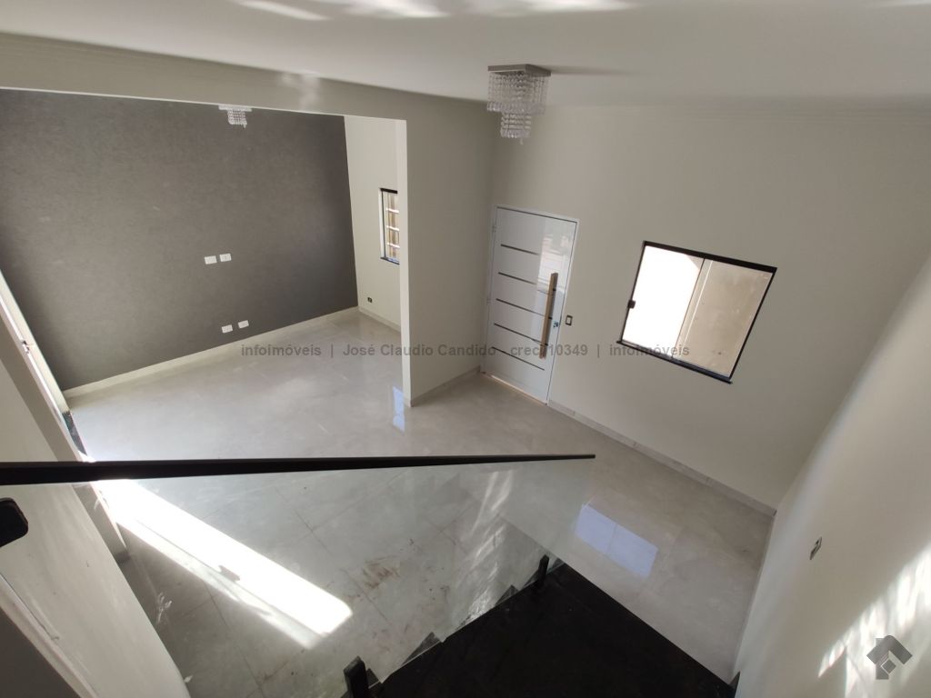 Construção piso superior 57,54m², sendo 3 dormitórios, 1 suíte e 2 quartos com um banheiro social. Construção piso inferior 53,91m², sala social, sala jantar, lavabo, cozinha, lavanderia e garagem.