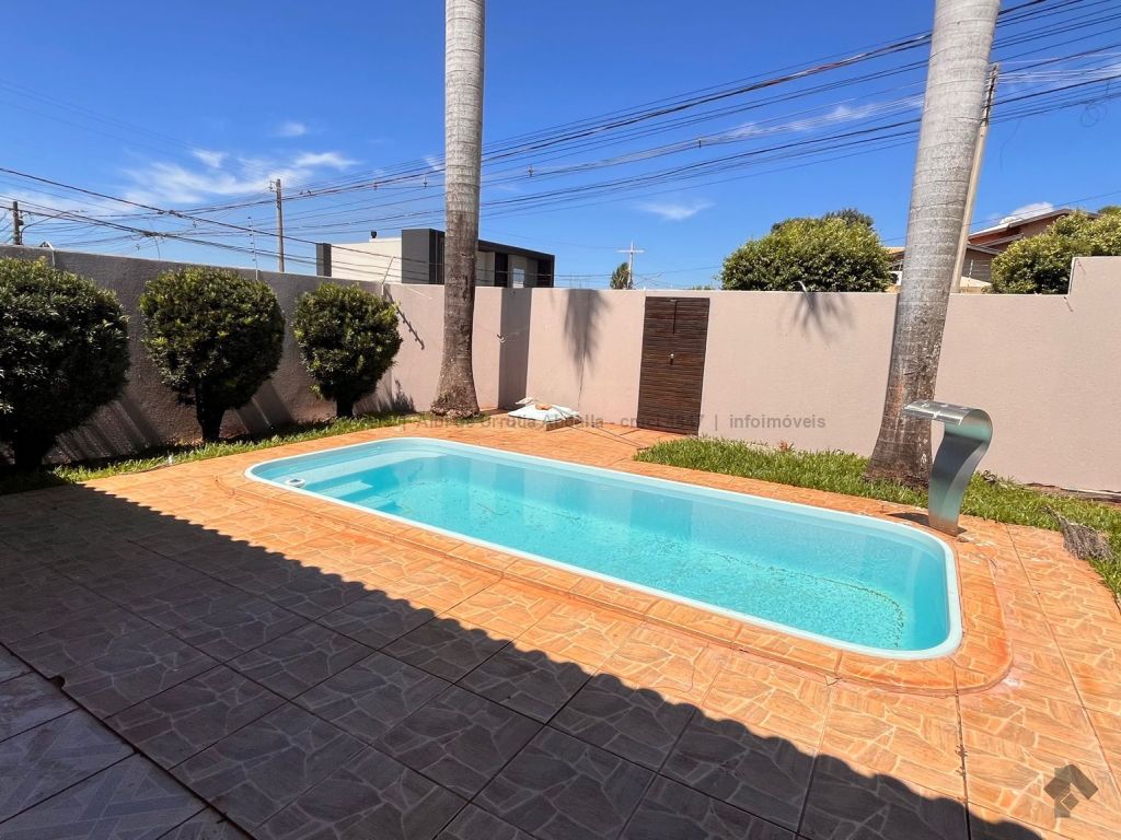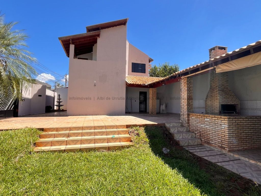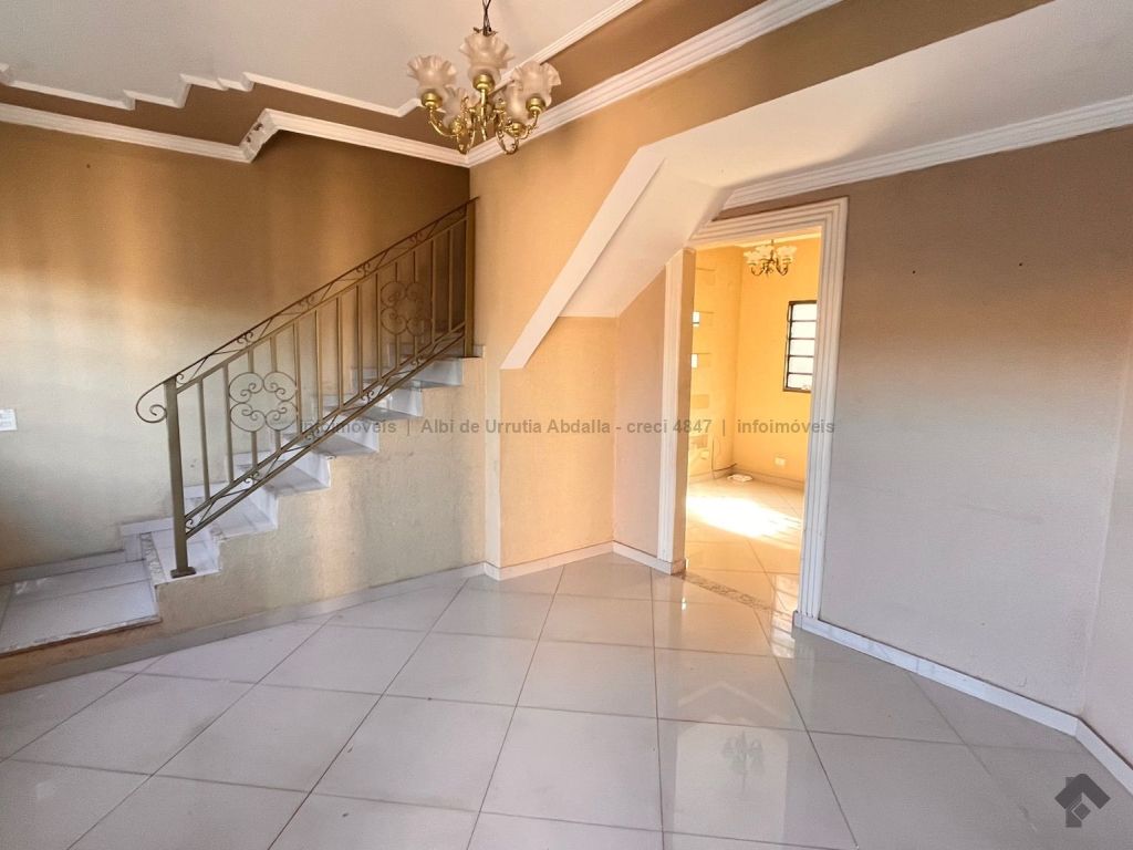 Sobrado amplo com sala de jantar, sala de estar, área de serviço coberta, cozinha planejada, lavabo, garagem coberta para um carro e 2 vagas descobertas. No piso superior, possui 1 suíte com planejados, sacada, dois dormitórios com armários, banheiro social. Possui espaço gourmet com piscina, churrasqueira, banheiro e dormitório de visitas.