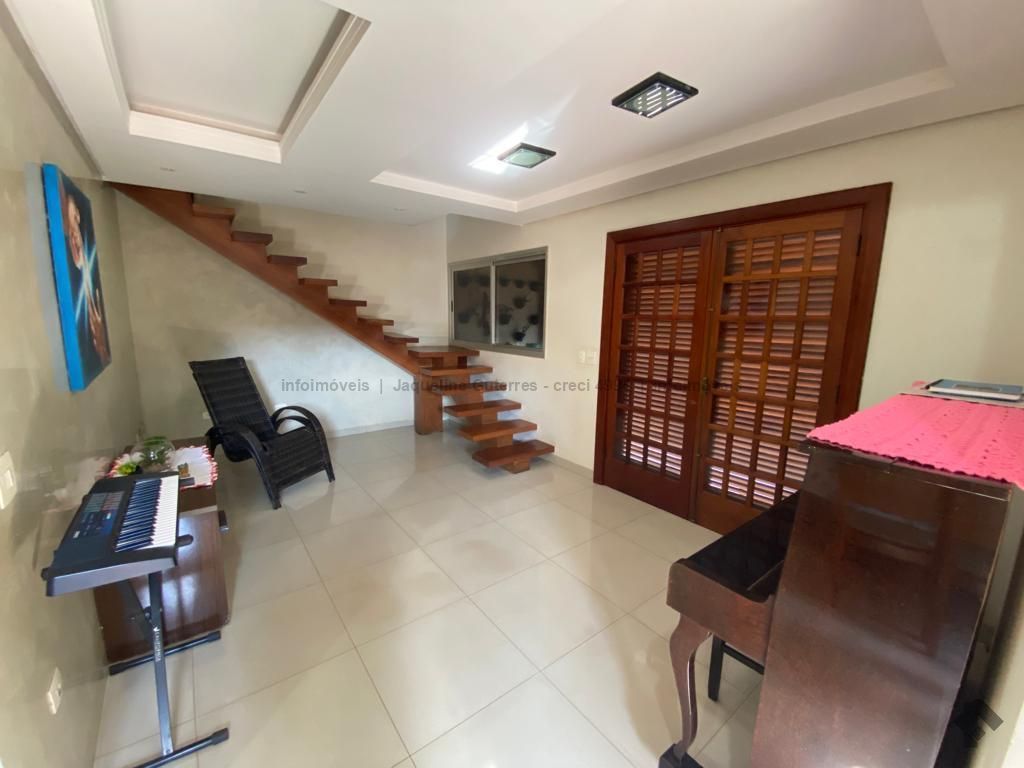 Sobrado com excelente acabamento, muita madeira, energia fotovoltaica, completo de armários planejados. Amplo quintal com muito espaço para ampliação ou piscina. Piso inferior possui sala de estar e jantar, suíte com closet, 2 quartos, banheiro social, cozinha ampla, área de serviço, varandas, garagens. Piso superior com sala de estar/tv, sacada, suíte e escritório/depósito. Sistema de energia fotovoltaica instalada que proporciona muita economia.