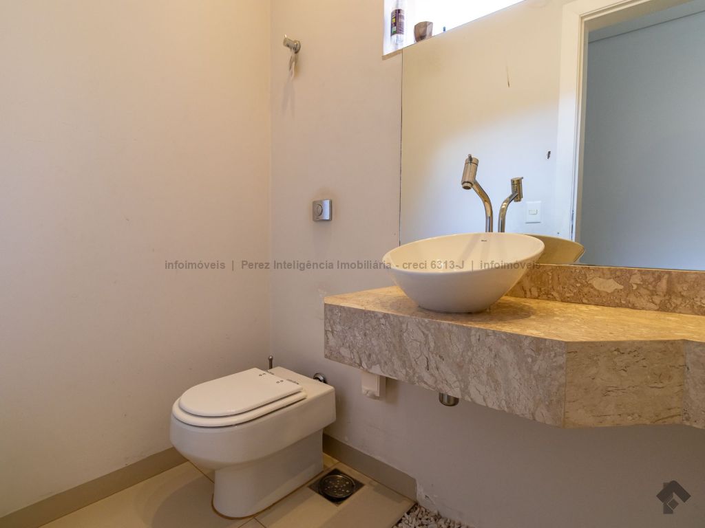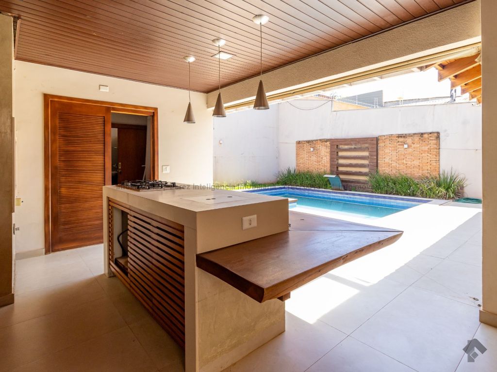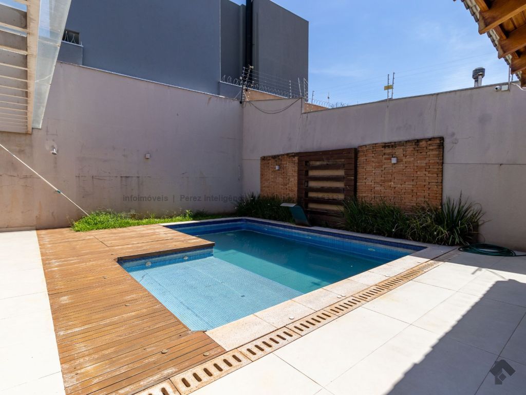 Sobrado de alto padrão com 315 m² de área construída em terreno de 480 m². Dispondo nos ambientes internos de uma sala de estar, um lavabo, uma sala de TV, uma sala de jantar, uma cozinha planejada, uma suíte master com closet, duas suítes, um mezanino utilizado como escritório e uma lavanderia. Ambientes externos contam com uma suíte externa, uma área gourmet, uma piscina com aquecedor, um banheiro externo, um depósito externo e duas vagas de garagem cobertas. Água quente nas três suítes e cozinha (boiler), maior conforto e praticidade. Ficam todos os planejados, móveis sob medida de alta qualidade. Todos os ares-condicionados permanecem no imóvel, maior comodidade.