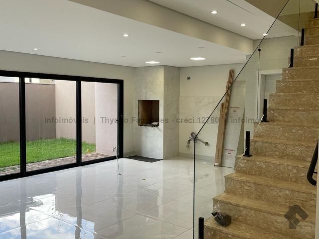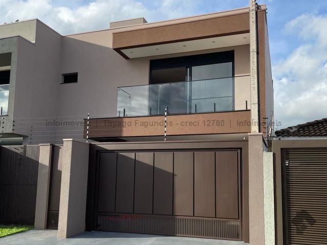 Sobrado amplo com 3 suítes, confortável e moderno para a família. Piso térreo espaçoso com espaço integrado: sala de estar, sala de jantar, cozinha, lavabo. Área externa dos fundos com potencial para construir uma área gourmet confortável para confraternização privativa com a família e amigos. Piso superior: 01 suíte master com formato para closet e vista fantástica para o pôr do sol, refúgio perfeito ao final do dia para descansar, 02 suítes com formato para closet.