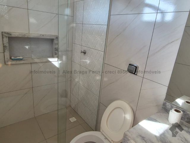 Casa no Parque das Águas, Bonito-MS, terreno de 250,03 m² (11,00 x 22,73 m), área construída de 95,56 m², sala e cozinha, 01 suíte e 02 quartos, 01 banheiro social, área de serviço com chuveirão nos fundos.
