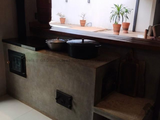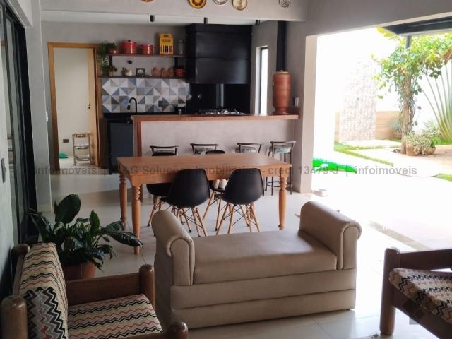 Sobrado em uma boa localização no Rita Vieira, com energia solar e boiler, piscina com aquecimento, duas suítes com armário no térreo, varanda com churrasqueira e fogão a lenha moderno que não produz fumaça, cinco banheiros no total.