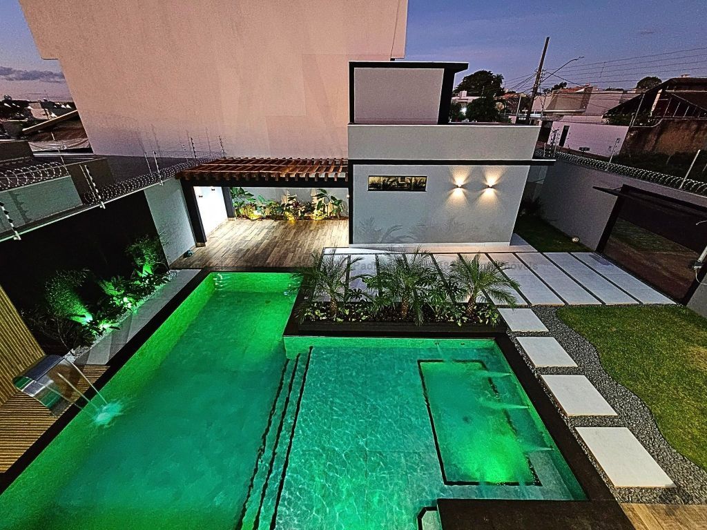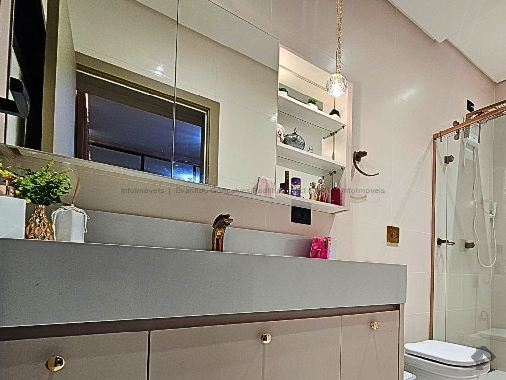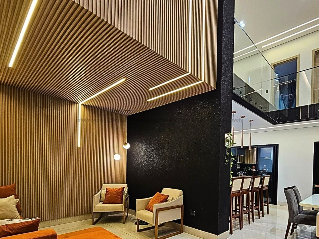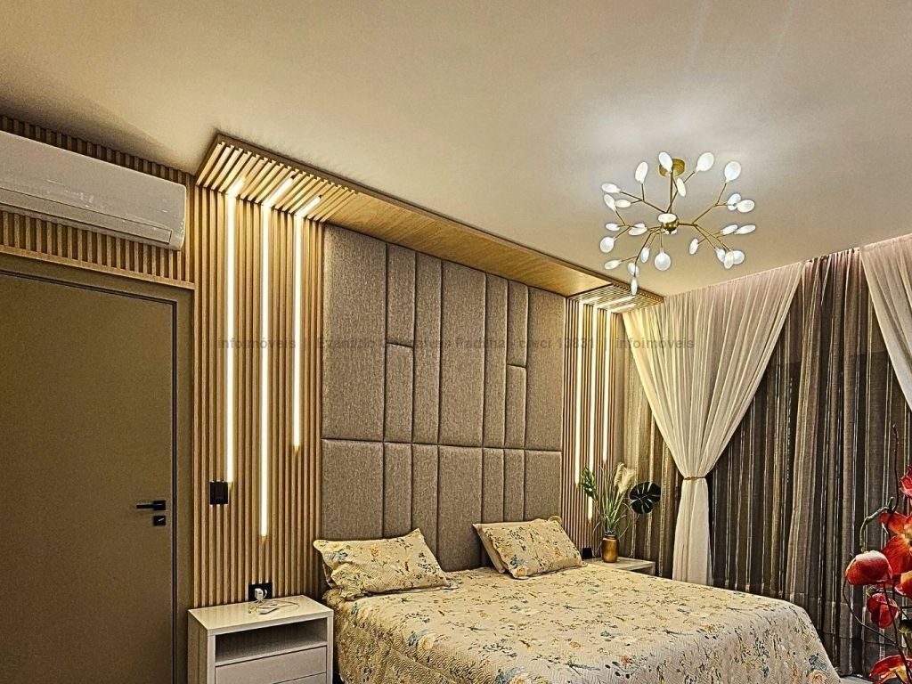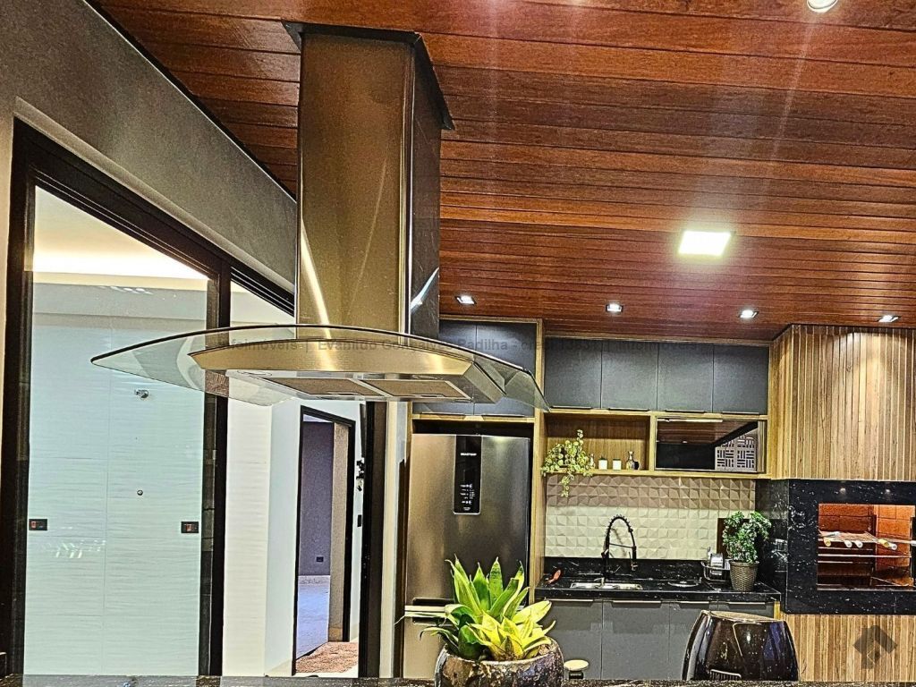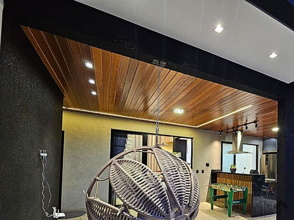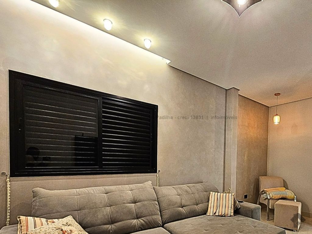 3 suítes amplas na parte superior, todas com armários planejados de alta qualidade, ar condicionado e sacada em todas, todos os banheiros com espelhos, box e armários. Sala ampla para até 3 ambientes, com pé direito alto, lustre, sala de jantar (acompanha mesa de jantar) sanca e iluminação em LED. Hall de entrada. Cozinha estilo americana cuba dupla e torneira mono comando mais geladeira. Espaço gourmet amplo com ilha em mármore, fogão cooktop, coifa e todo com armários planejados. Banheiro na área externa. Escritório. Lavanderia fechada e toda planejada. Duas entradas com portão de elevação. 4 vagas de garagem na entrada principal. Depósito nos fundos. Área de pergolado nos fundos e na piscina.