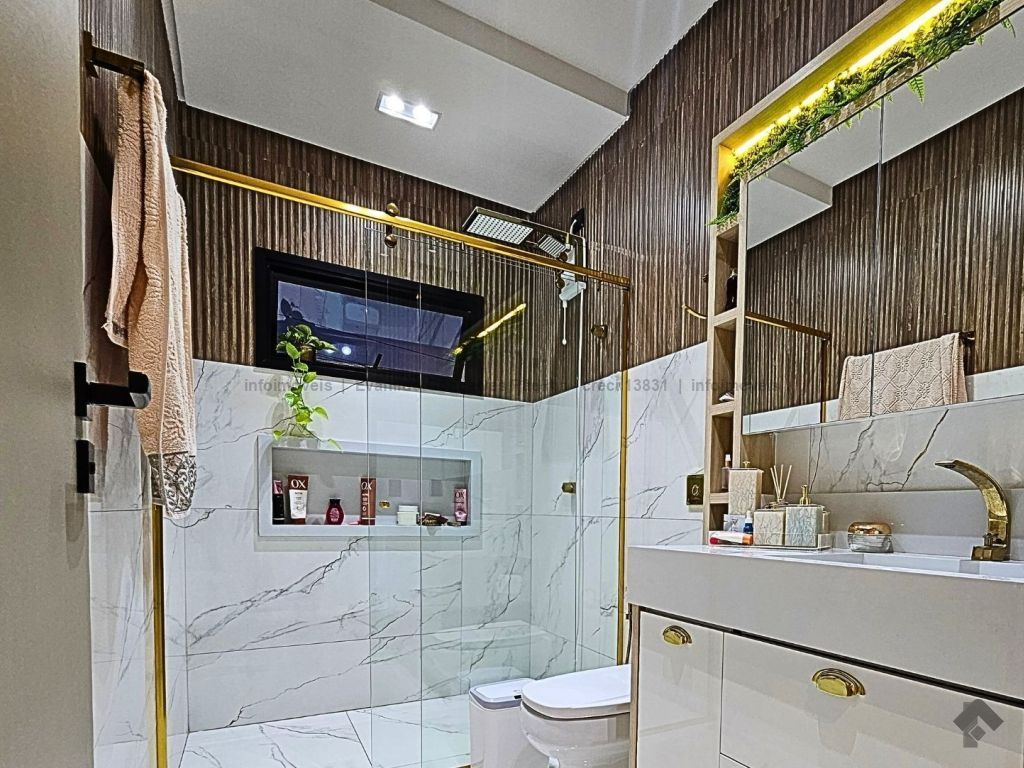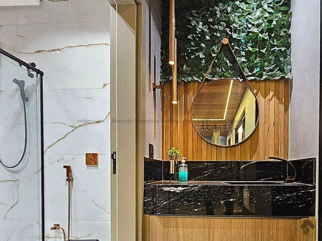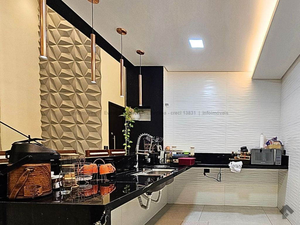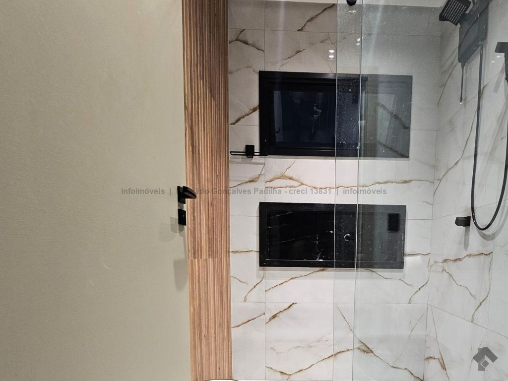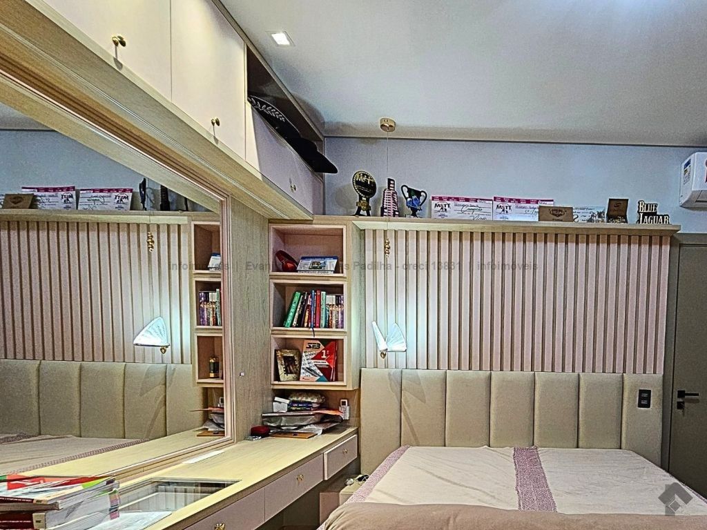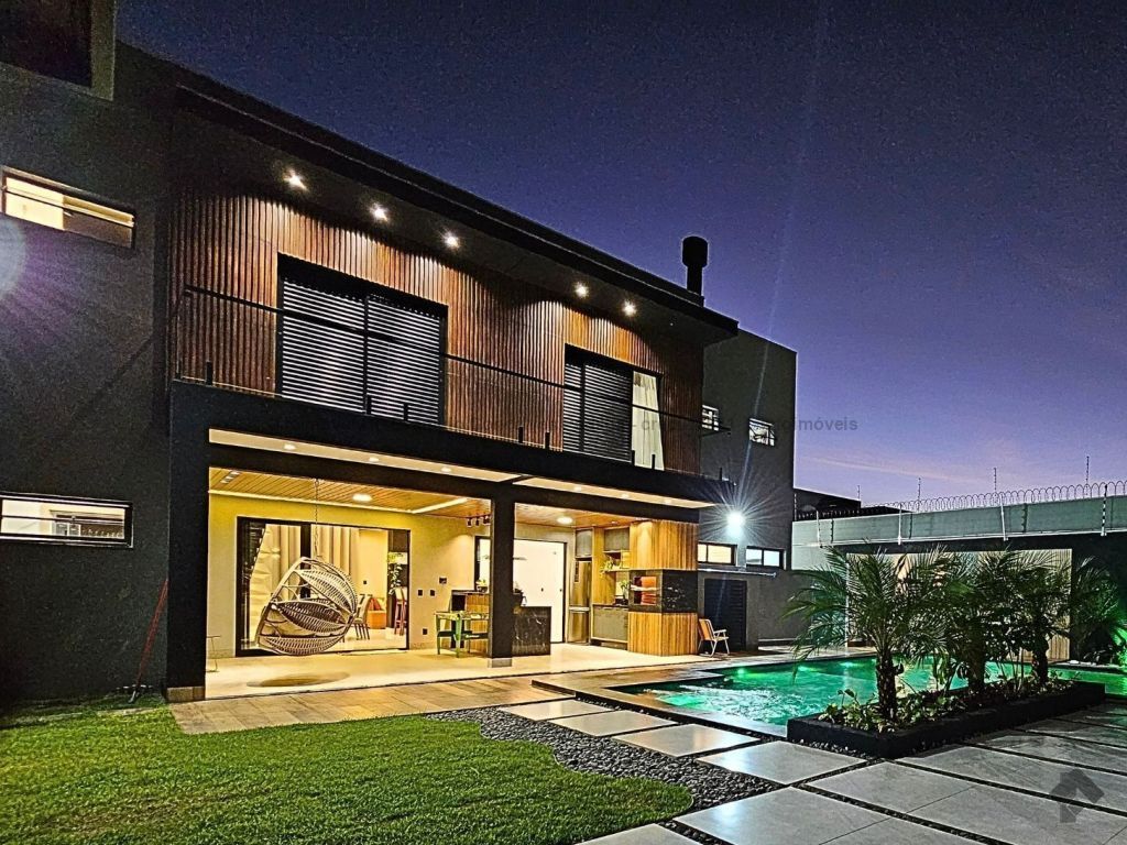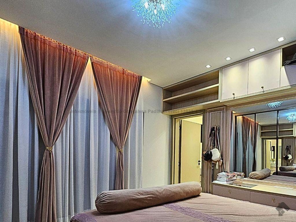3 suítes amplas na parte superior, todas com armários planejados de alta qualidade, ar condicionado e sacada em todas, todos os banheiros com espelhos, box e armários. Sala ampla para até 3 ambientes, com pé direito alto, lustre, sala de jantar (acompanha mesa de jantar) sanca e iluminação em LED. Hall de entrada. Cozinha estilo americana cuba dupla e torneira mono comando mais geladeira. Espaço gourmet amplo com ilha em mármore, fogão cooktop, coifa e todo com armários planejados. Banheiro na área externa. Escritório. Lavanderia fechada e toda planejada. Duas entradas com portão de elevação. 4 vagas de garagem na entrada principal. Depósito nos fundos. Área de pergolado nos fundos e na piscina.