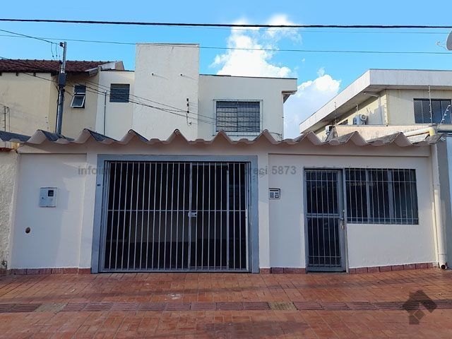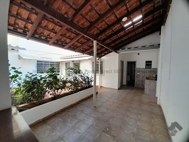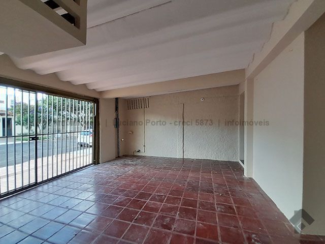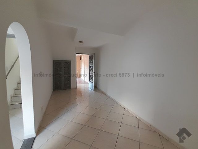 Frente toda fechada com garagem para dois veículos e escritório independente, entrada social e de serviço, andar térreo com sala de jantar, sala de dois ambientes, cozinha com revestimento até o teto e despensa grande. Andar superior com hall, três quartos sendo um com guarda-roupas embutido e banheiro social. Varanda nos fundos com lavanderia, banheiro completo e amplo jardim. Piso em cerâmica, em bom estado de conservação.