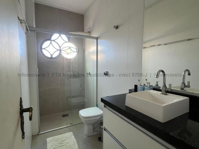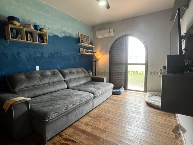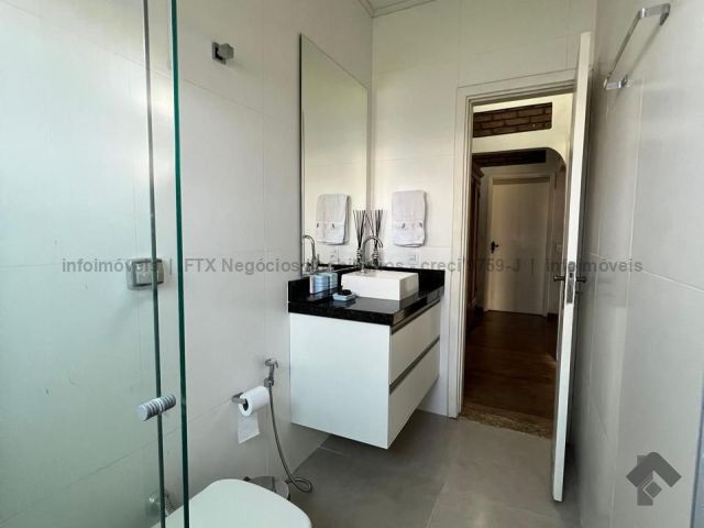 Imóvel com 2 suítes, 2 quartos, 1 banheiro social, sacada, 4 salas, 1 adega, lavabo, cozinha, lavanderia, despensa, banheiro de serviço, varanda com churrasqueira, vaga para 4 carros e piscina com cascata.