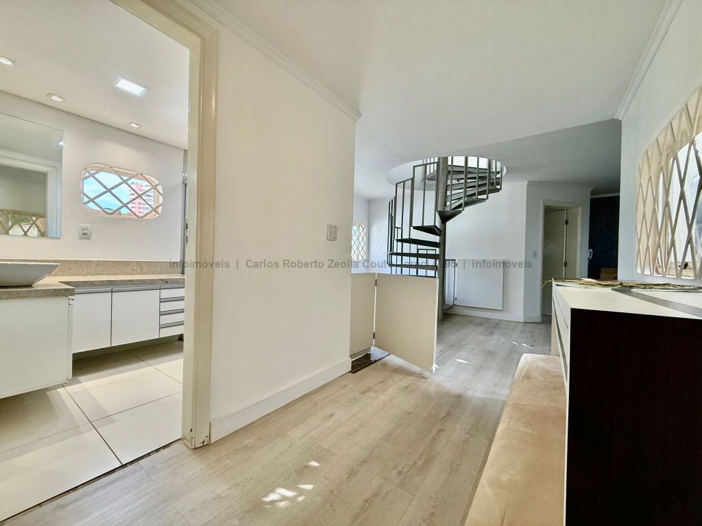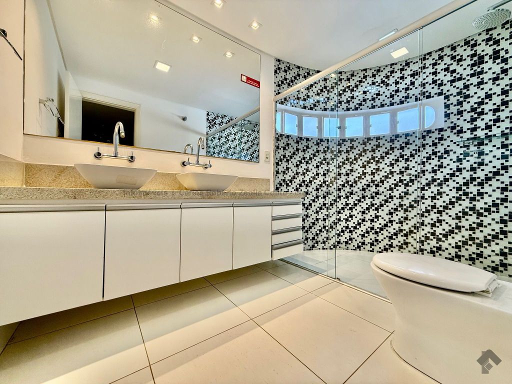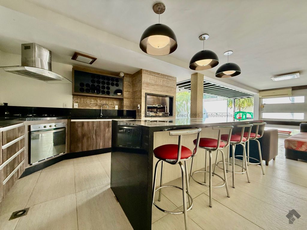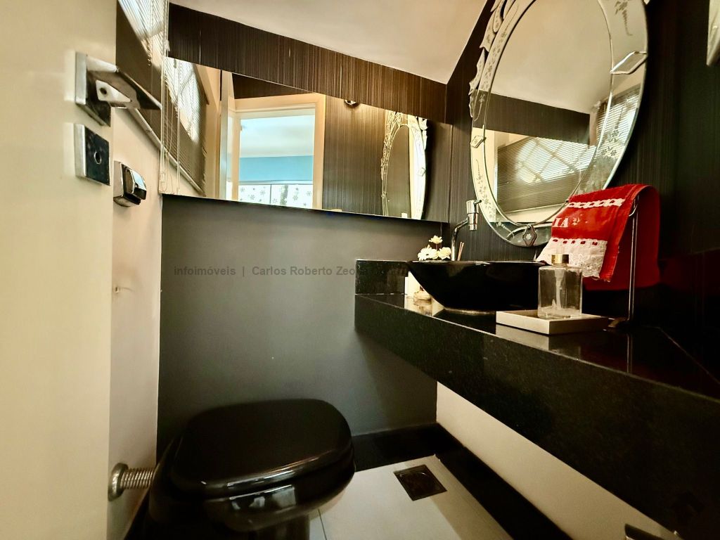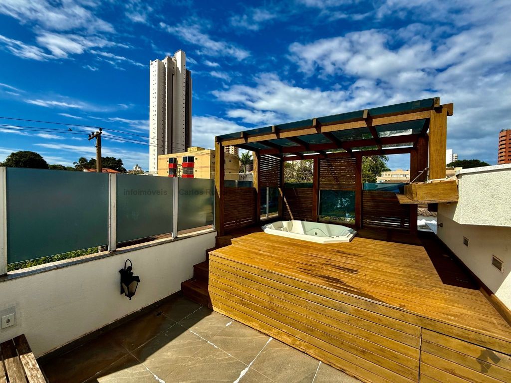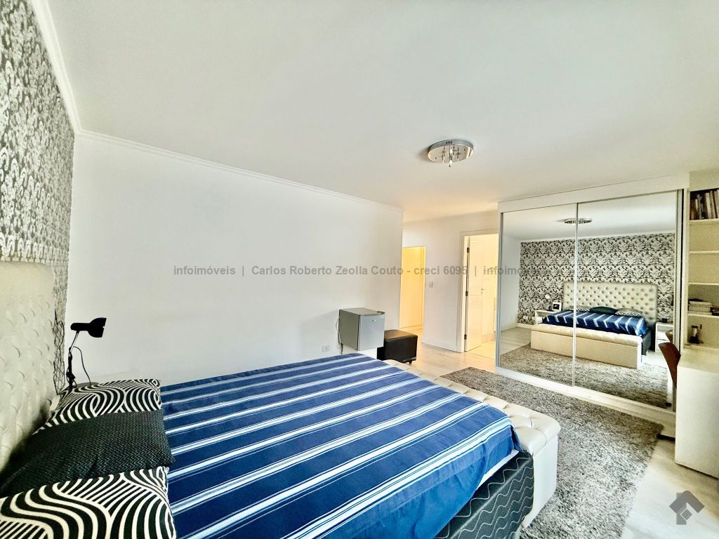 Pavimento térreo: sala 3 ambientes, jardim de inverno, lavabo, cozinha, despensa, quarto de empregada com banheiro. Pavimento superior (1º andar): 1 suíte com closet, 2 quartos com sacada, banheiro social e sala ampla. Pavimento superior (2º andar): escritório, sala (studio), banheiro social, sacada e área de lazer ao ar livre com banheira de ofurô e deck de madeira. Área anexa à casa: área gourmet climatizada e fechada, com sala ampla, churrasqueira e giragrill, bancada de pia contendo fogão e coifa embutidos, painel com TV e mesa de mármore central. Área superior à área gourmet: contém uma sala e uma suíte. 2 vagas de garagem cobertas e 3 vagas de garagem descobertas. Amplo espaço livre de terreno.