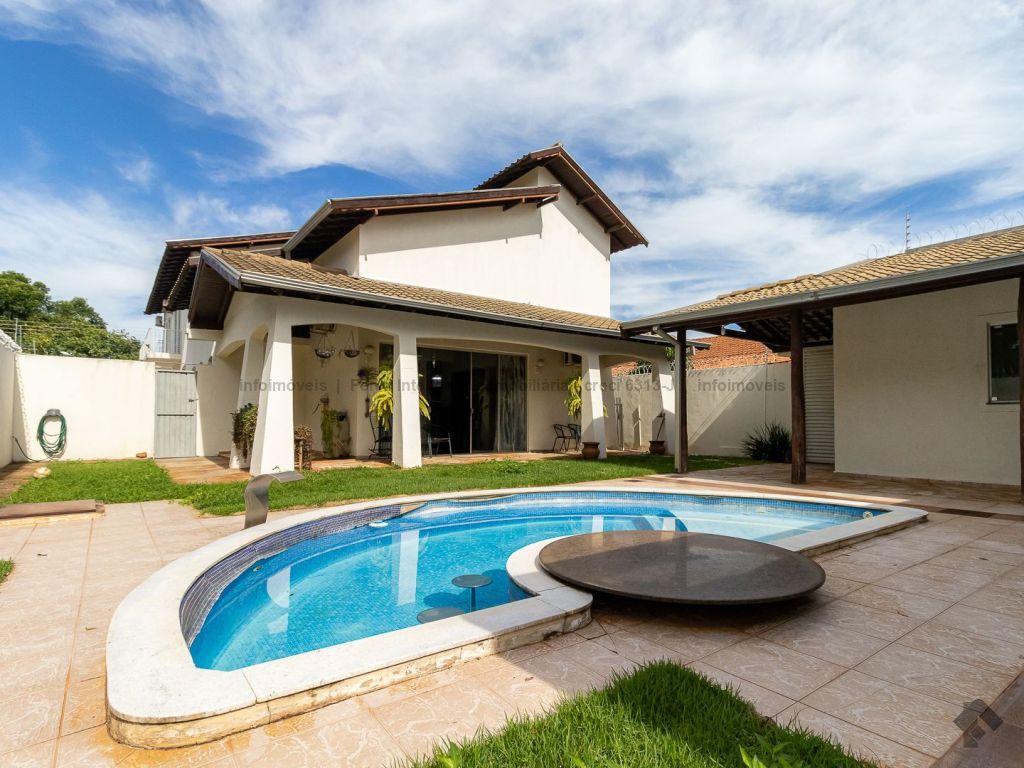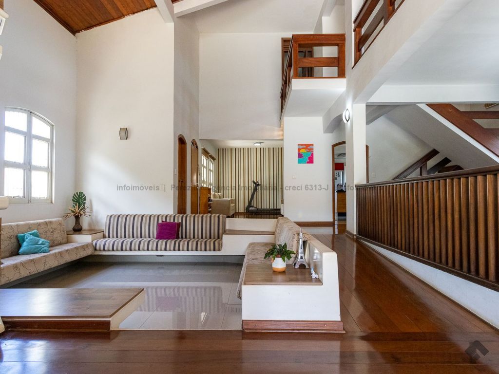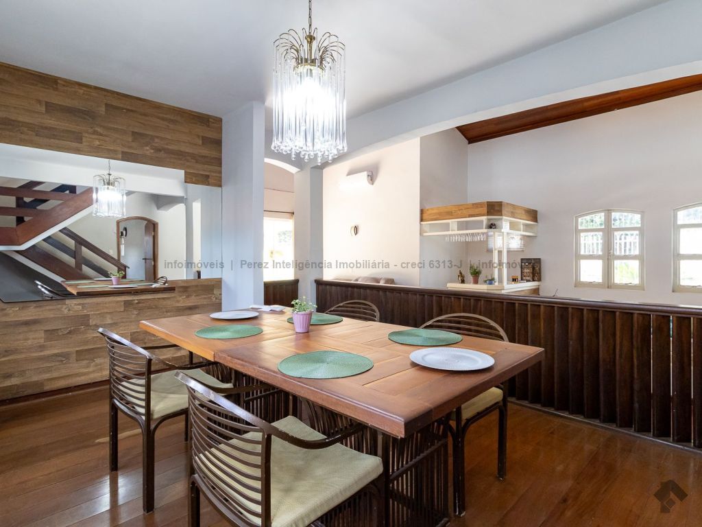 Sobrado com 592 m² de área útil em terreno de 1.575 m², bairro Vila Bandeirantes. Ambientes internos: 01 hall de entrada, 02 salas de estar, 01 lavabo, 01 sala de jantar, 01 sala de TV com armários planejados, 01 cozinha com armários planejados, 03 suítes com armários planejados, 01 quarto com armários planejados, 01 escritório com armários planejados, 02 banheiros sociais, 03 sacadas, 01 área de serviço, 01 quarto de serviço, 01 banheiro de serviço. Ambientes externos: 01 área gourmet, 01 churrasqueira, 01 piscina, 01 banheiro externo, 07 vagas de garagem cobertas.
