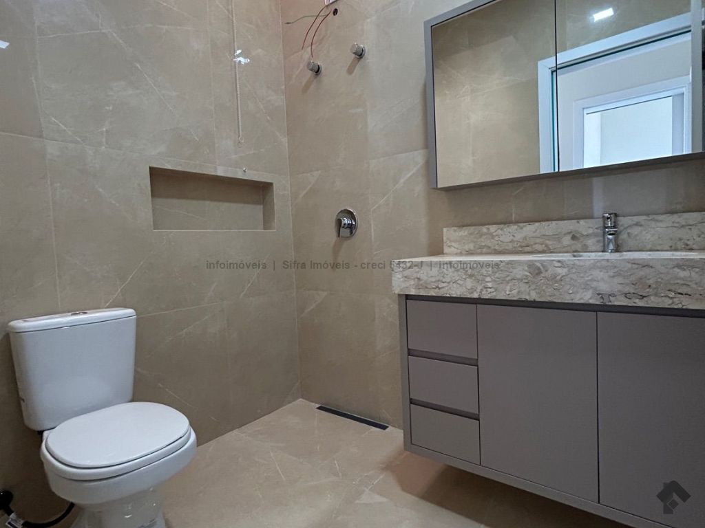 Lindo sobrado, possui 01 suíte com closet, 02 quartos e banheiro com planejados, sala para dois ambientes, cozinha aberta com planejados, com bancada, cooktop e coifa. Na área externa possui lavabo, fundo com quintal, ducha, área para churrasqueira com planejados e acesso na lateral.