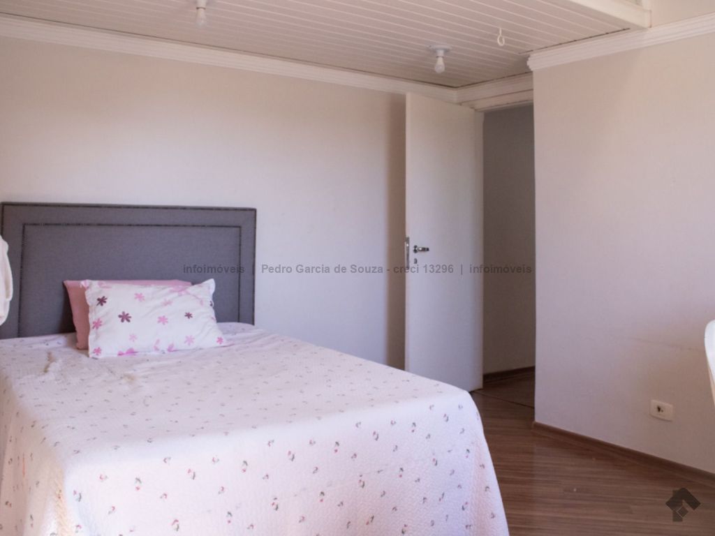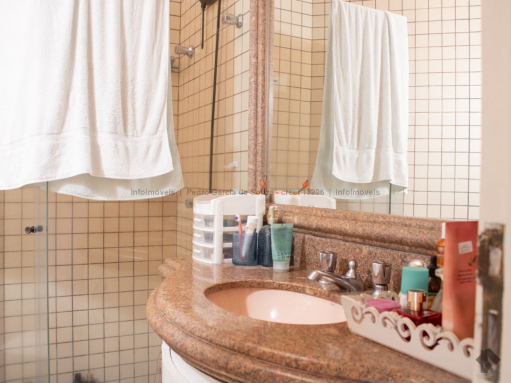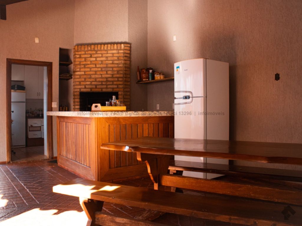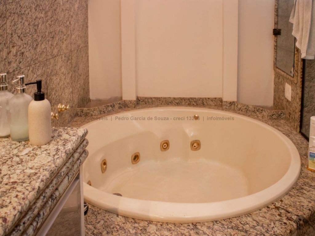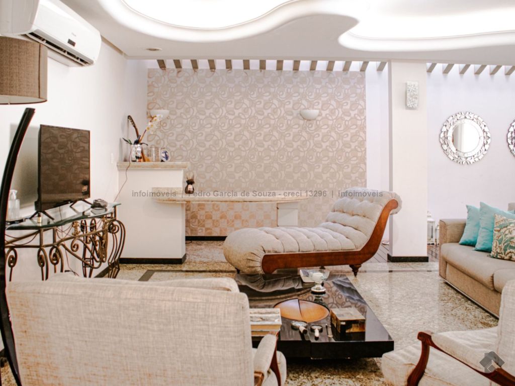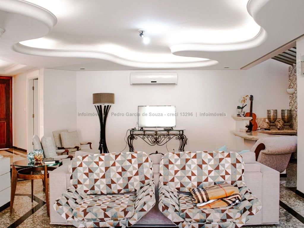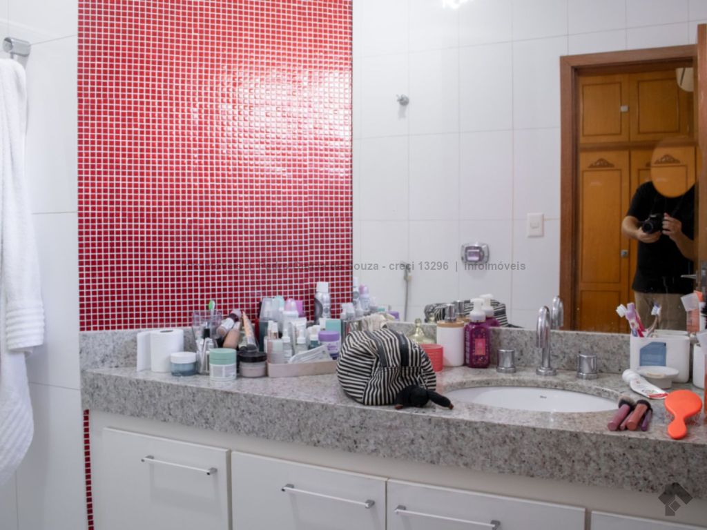 Com 720m² de terreno e 686m² de área construída, o primeiro piso dispõe de jardim, hall de entrada, escritório com jardim de inverno e banheiro, lavabo, sala com três ambientes integrados à área gourmet, ante-sala, sala de jantar, cozinha com despensa, área de serviço, piscina com sala de manutenção e banheiro, área gourmet com edícula, dois quartos com um banheiro social e uma suíte, além de garagem para até 4 carros. O piso superior conta com iluminação natural, sala de televisão, uma suíte master, uma suíte e duas demi-suítes com mezanino.
