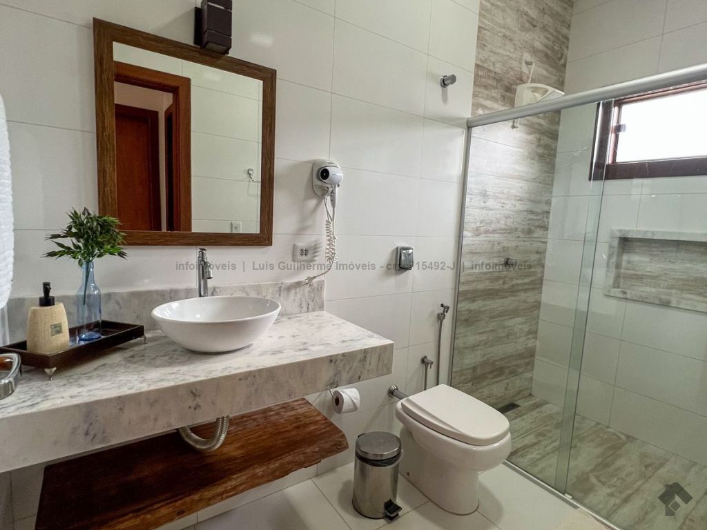 Piso inferior contendo: sala/cozinha, 02 quartos, 01 banheiro, lavanderia, área de churrasqueira. Piso superior contendo: sala/cozinha, 02 quartos, 01 banheiro, área de churrasqueira com uma vista de tirar o fôlego. Área gourmet, quadra de beach tennis e uma piscina ampla. Jardim arborizado. Garagem ampla.