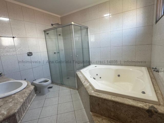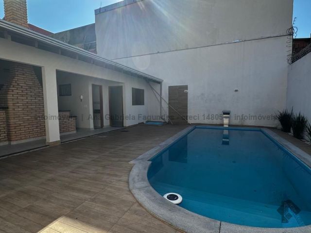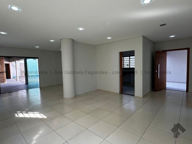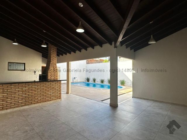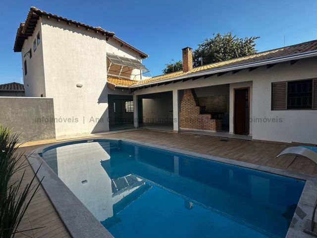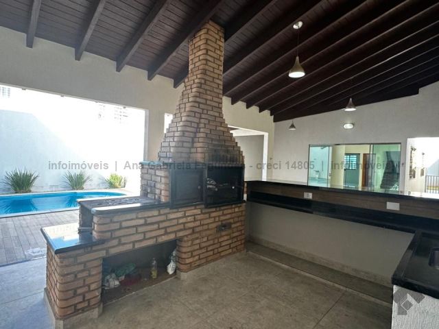 Sobrado contendo na parte superior: 1 suíte com closet e armários planejados e o banheiro com banheira e duas cubas, além de 3 quartos e um banheiro social. Embaixo, contém: um escritório/quarto, um lavabo, sala de três ambientes, cozinha rica em planejados, área de serviço ampla e despensa. Nos fundos, área de lazer contendo: um quarto, um banheiro, uma área gourmet com forno a lenha, forno de pizza e churrasqueira, e uma piscina. Corredor todo ao redor da casa com canil.