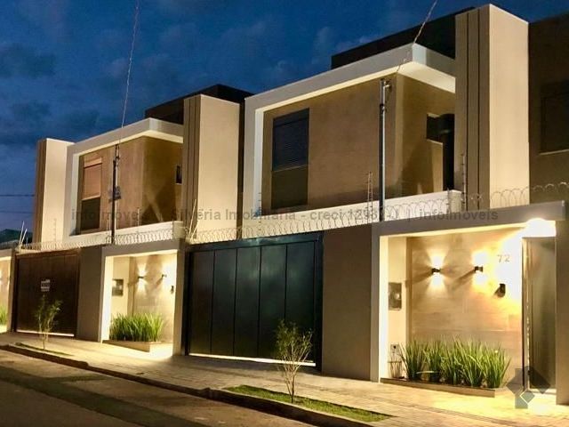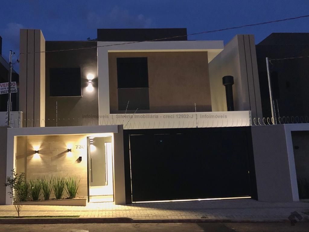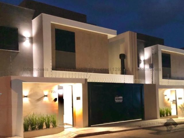Sobrado usado em ótima localização, acabamento diferenciado, conta com 3 suítes (uma com closet), sala de estar, sala de jantar, cozinha americana, lavabo, churrasqueira, 2 vagas de garagem, depósito, instalações para ar condicionado, sistema de aquecimento de água com boiler (torneiras da cozinha e banheiros), cerca elétrica com alarme e concertina, portão de elevação, projeto de paisagismo, área construída de 121 m².