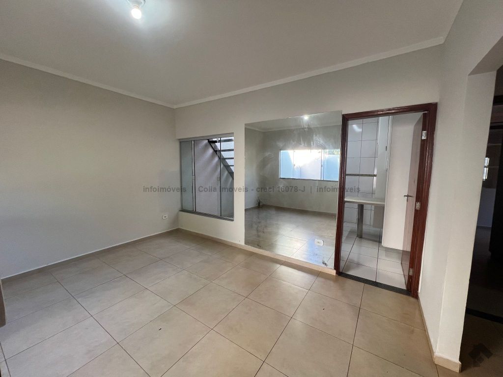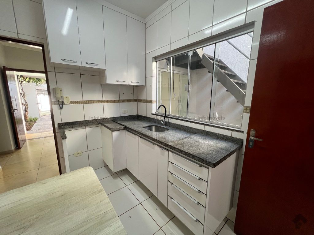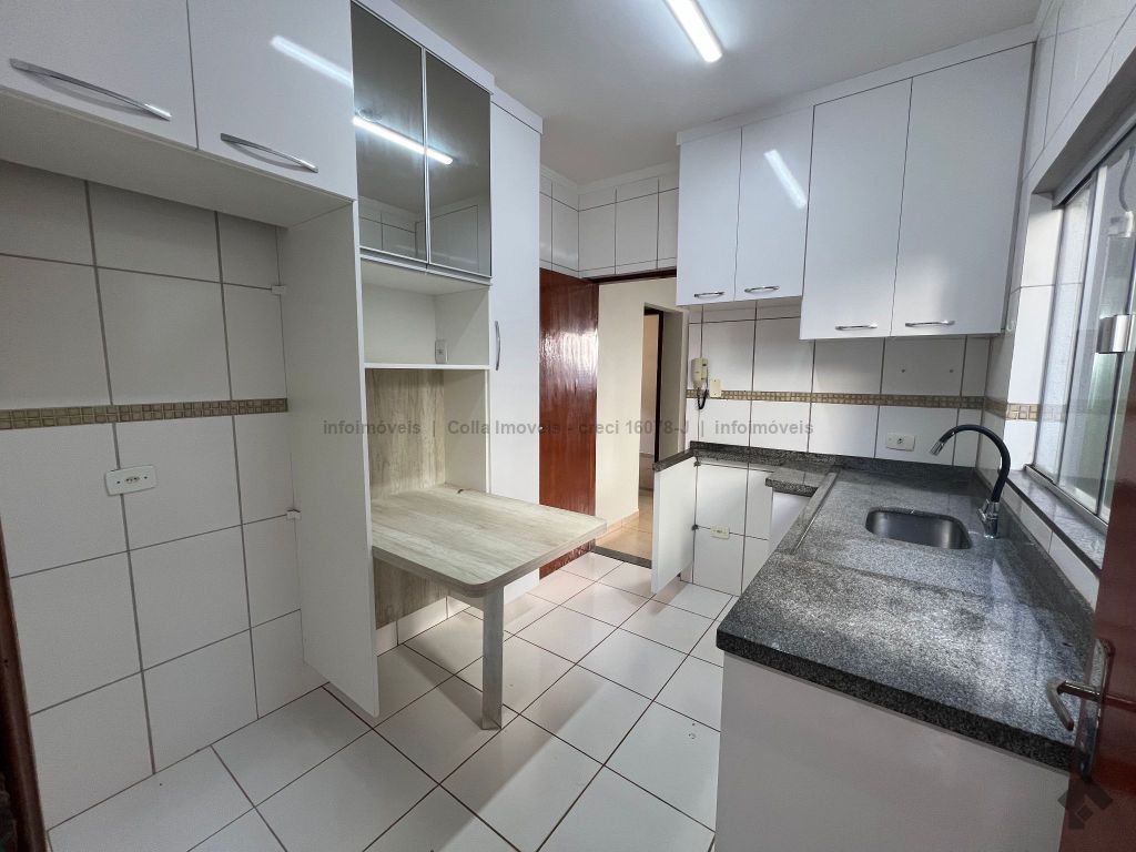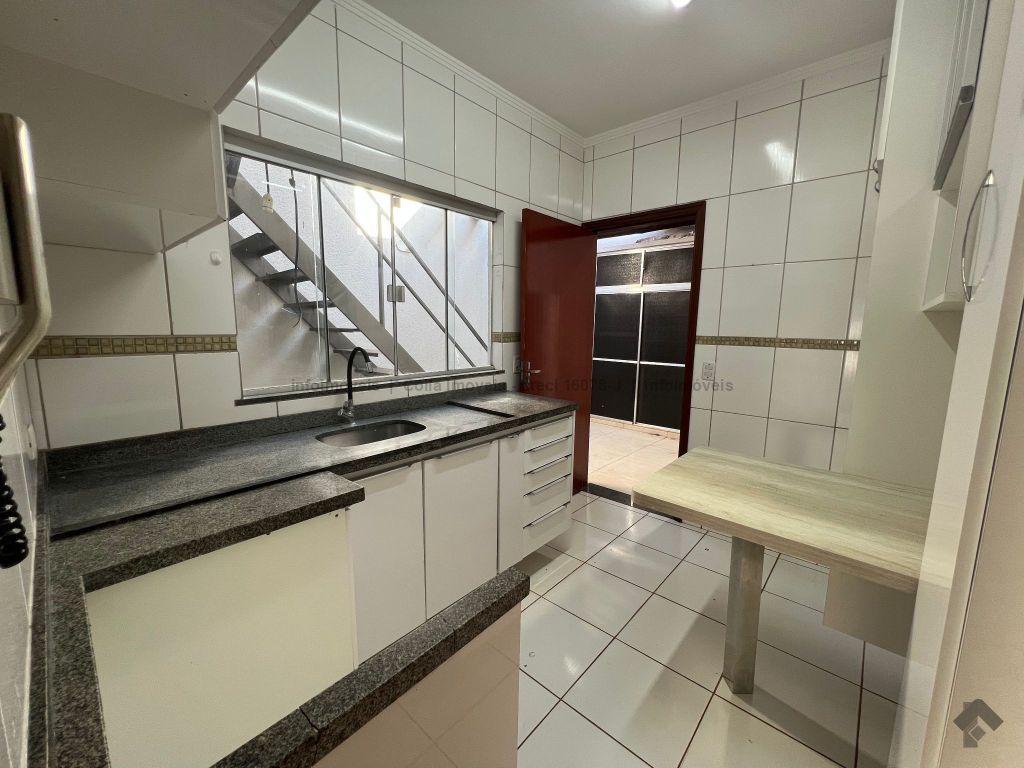 Sobrado com 3 quartos. No piso inferior, uma suíte com armários e um quarto com armários. No piso superior, um quarto sem armários (ideal para home office). Living com espaço para sala de TV e de jantar, cozinha com armários planejados impecáveis, área de serviço com varal reforçado e espaço para área gourmet.