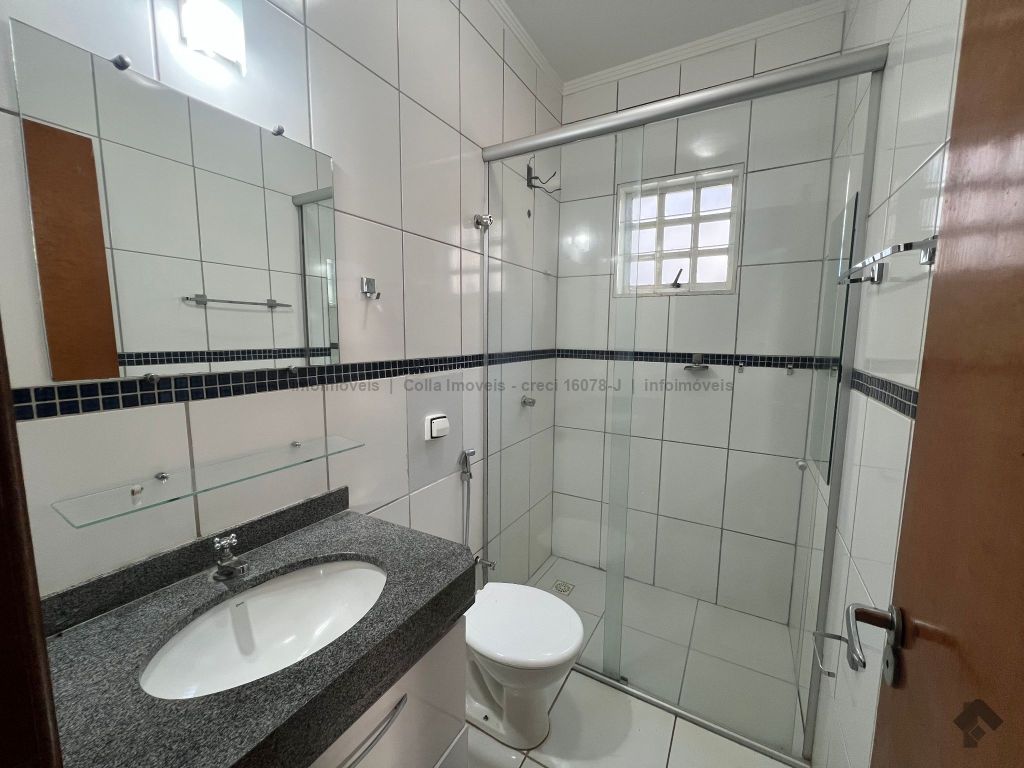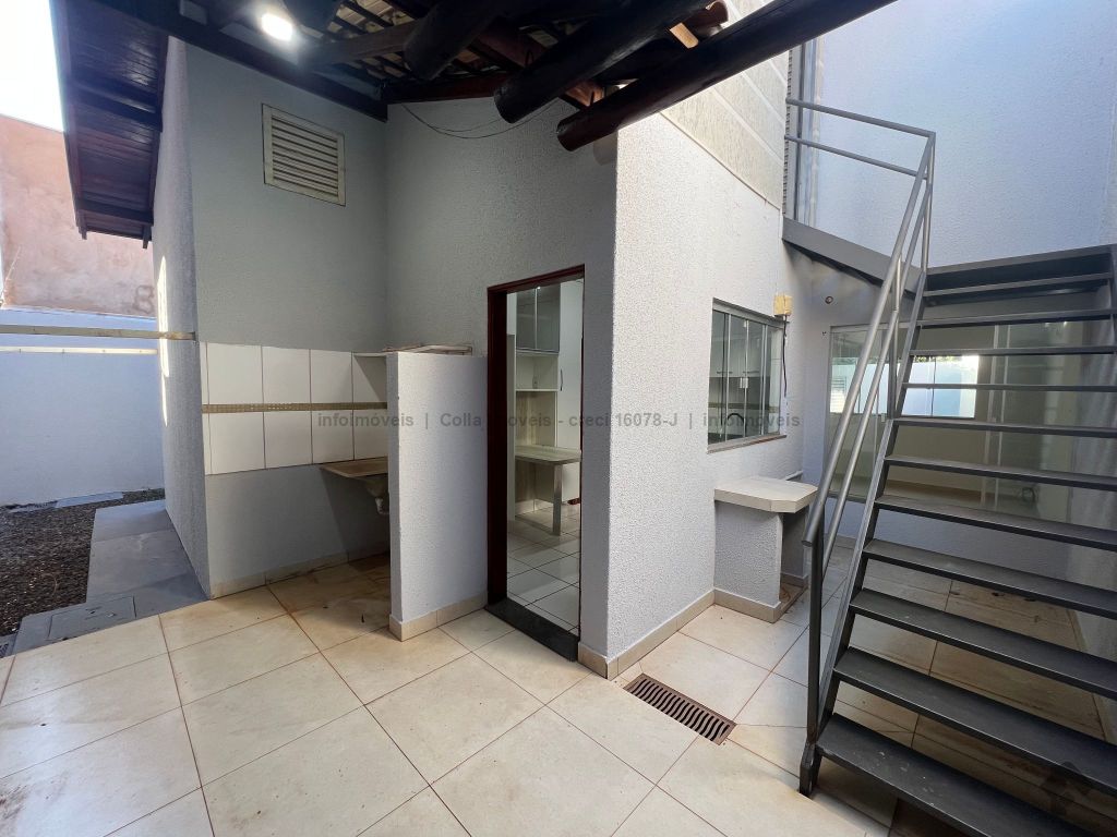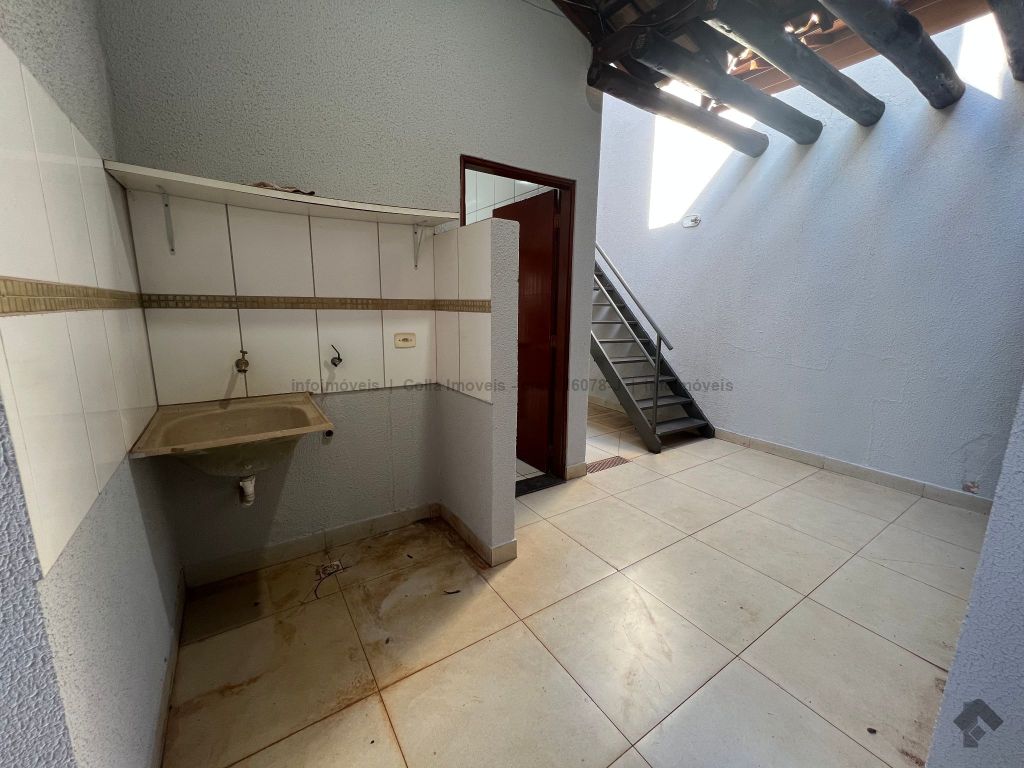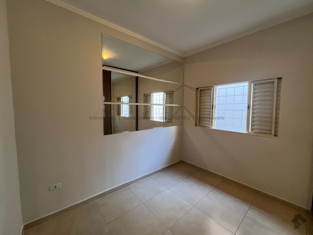 Sobrado com 3 quartos. No piso inferior, uma suíte com armários e um quarto com armários. No piso superior, um quarto sem armários (ideal para home office). Living com espaço para sala de TV e de jantar, cozinha com armários planejados impecáveis, área de serviço com varal reforçado e espaço para área gourmet.