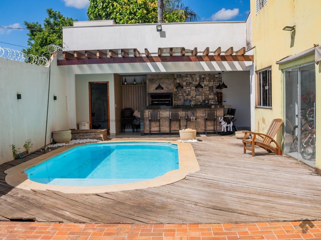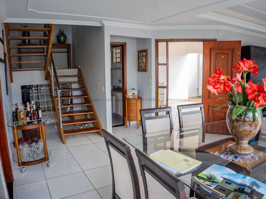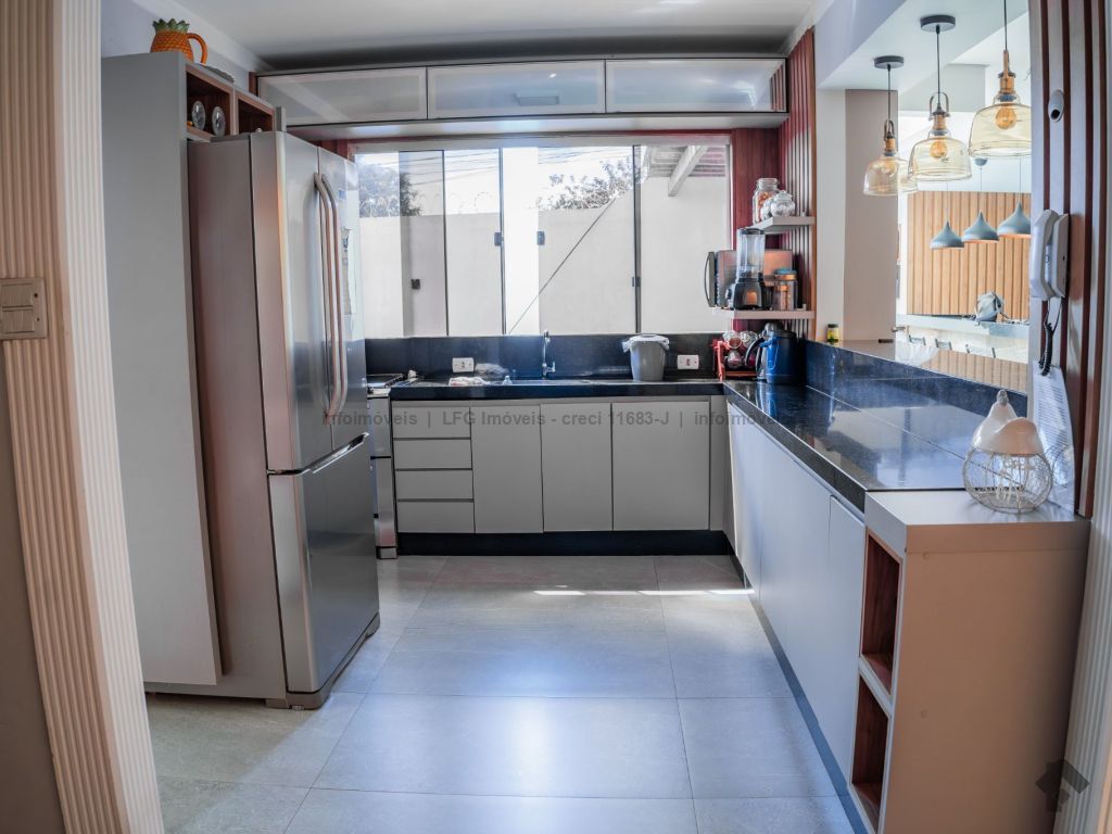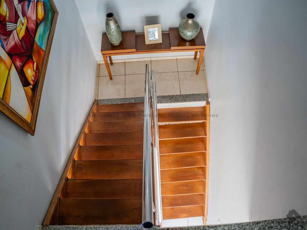 Piso superior 01 suíte com armários e sacada, 01 quarto com sacada com armários, 01 quarto com armários, 01 banheiro social. Piso inferior sala para 02 ambientes (jantar e estar), lavabo, 01 sala de tv, 01 cozinha com armários integrada ao espaço gourmet, varanda espaçosa com jardim de inverno, churrasqueira, piscina, banheiro de piscina, chaveirão, lavanderia.