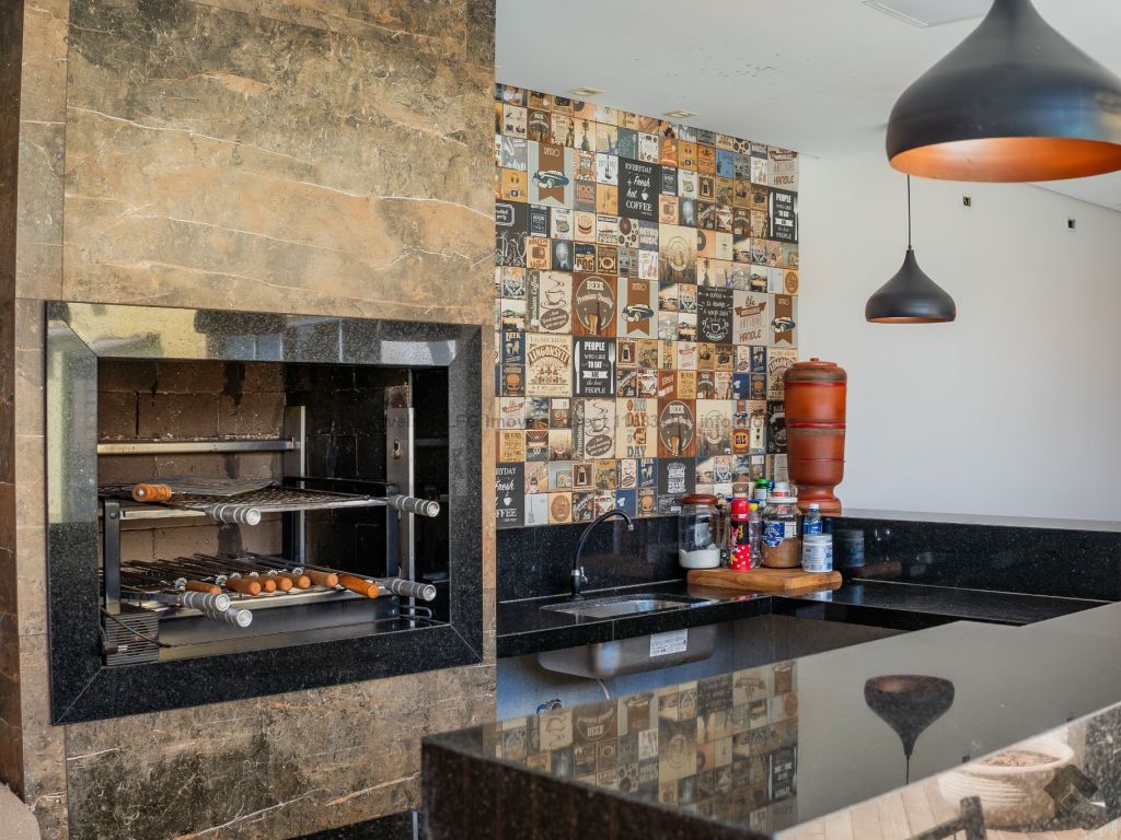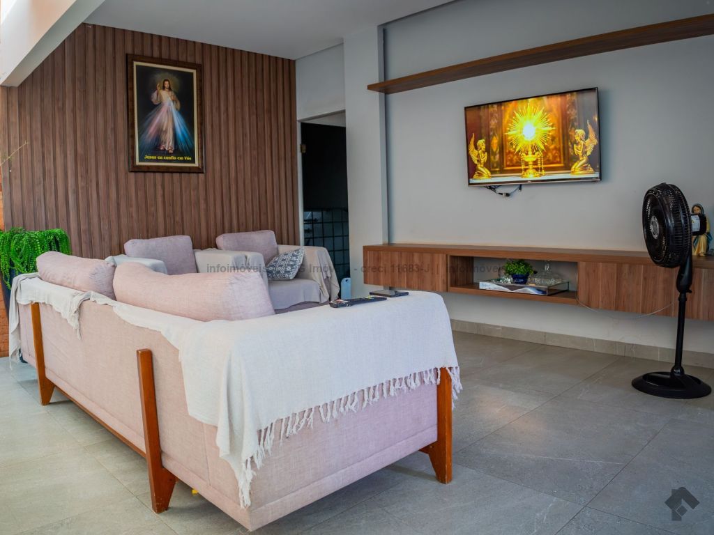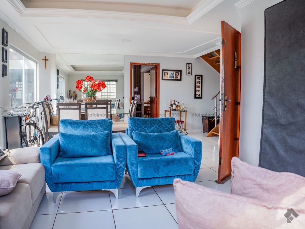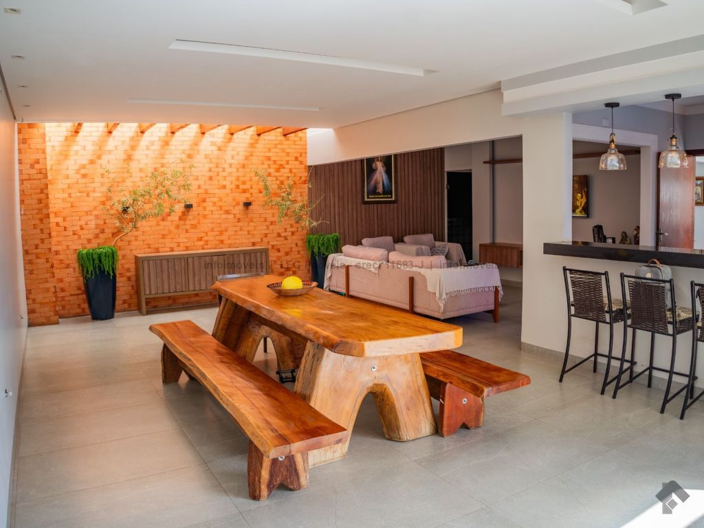 Piso superior 01 suíte com armários e sacada, 01 quarto com sacada com armários, 01 quarto com armários, 01 banheiro social. Piso inferior sala para 02 ambientes (jantar e estar), lavabo, 01 sala de tv, 01 cozinha com armários integrada ao espaço gourmet, varanda espaçosa com jardim de inverno, churrasqueira, piscina, banheiro de piscina, chaveirão, lavanderia.