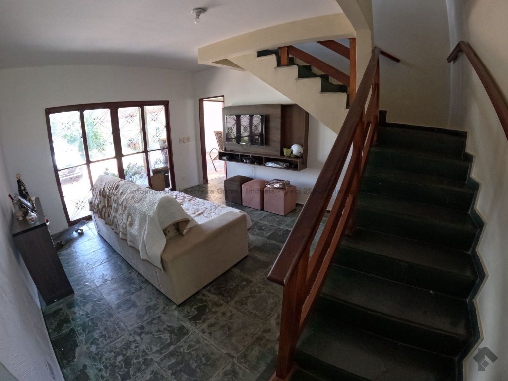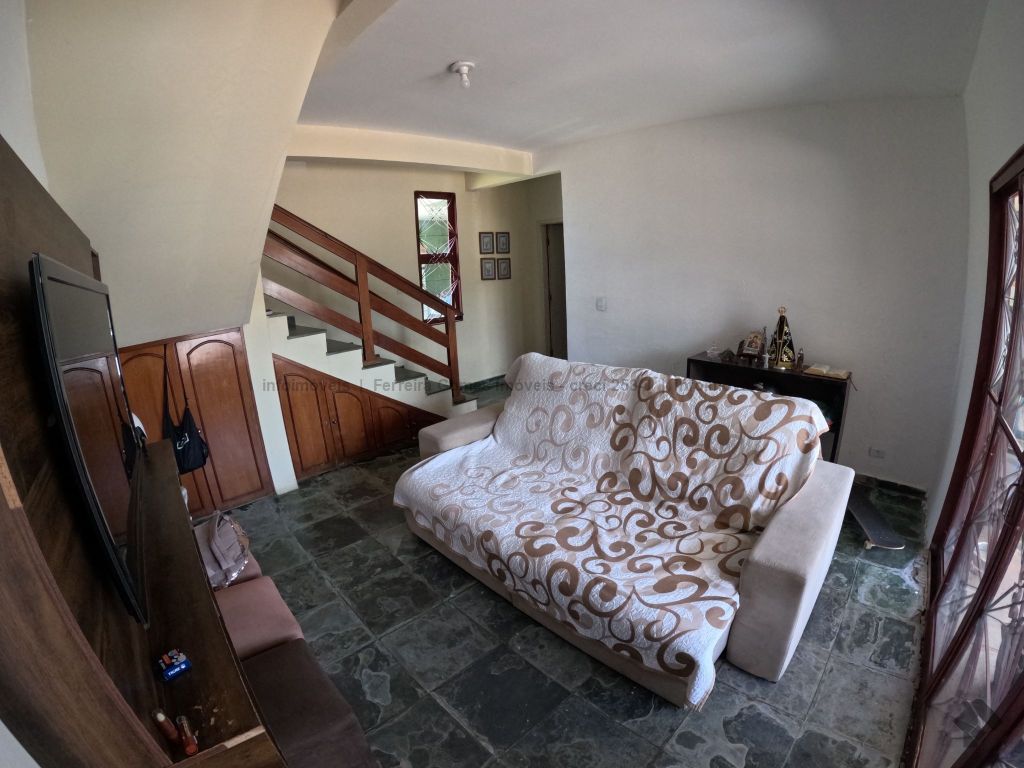 Sobrado residencial com amplo terreno, contendo sala de jantar, 01 quarto, wc social, cozinha e área de serviços no primeiro piso, e sala de TV, 03 quartos, sendo uma suíte, sacada e wc social no piso superior. Imóvel com amplo espaço no terreno, ideal para família em rua tranquila.
