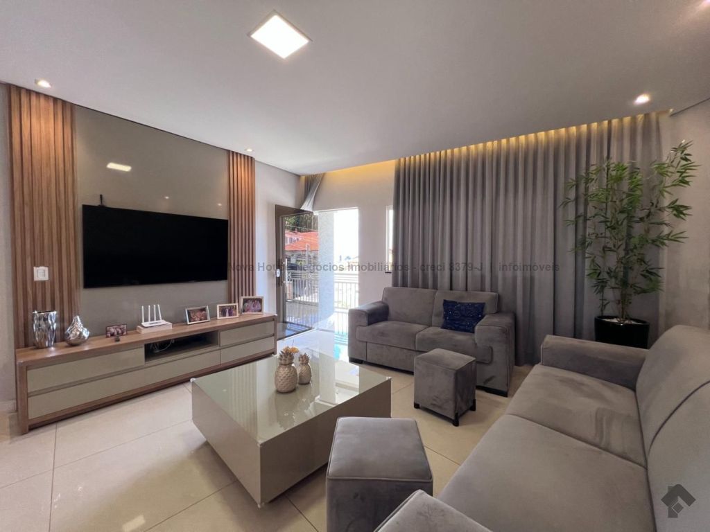 Sobrado com elevador, cozinha toda planejada, copa, 2 lavanderias, lavabo, sala com sacada, 2 suítes (uma possui closet e sacada), 2 dormitórios, 1 banheiro, 2 despensas, varanda, espaço gourmet com lavabo e piscina. Vaga para até 9 carros.