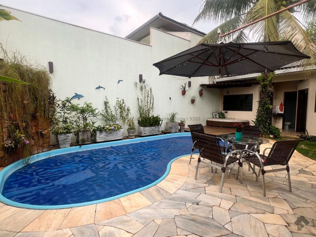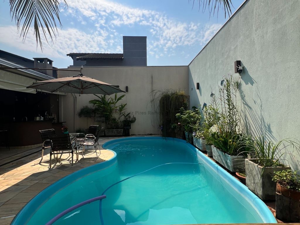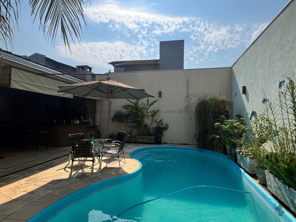 Belo sobrado aconchegante. Piso térreo: 01 cozinha, 01 copa, 01 quarto de hóspedes com uma demi suíte, 01 suíte com hidromassagem, 01 closet, 02 quartos/escritório, 01 lavanderia fechada, área gourmet com churrasqueira, 01 WC e piscina aquecida, jardim de inverno, 01 loja/ateliê e garagem coberta com 03 vagas. Piso superior: 02 quartos, 02 closets, 01 demi suíte, 01 sala de TV e 01 sacada. Lote com área total de 339,72 m², contendo um sobrado com dois pavimentos, área edificada de 222,17 m² averbada na matrícula, e mais 69,83 m² não averbados, totalizando 292 m² de área construída.