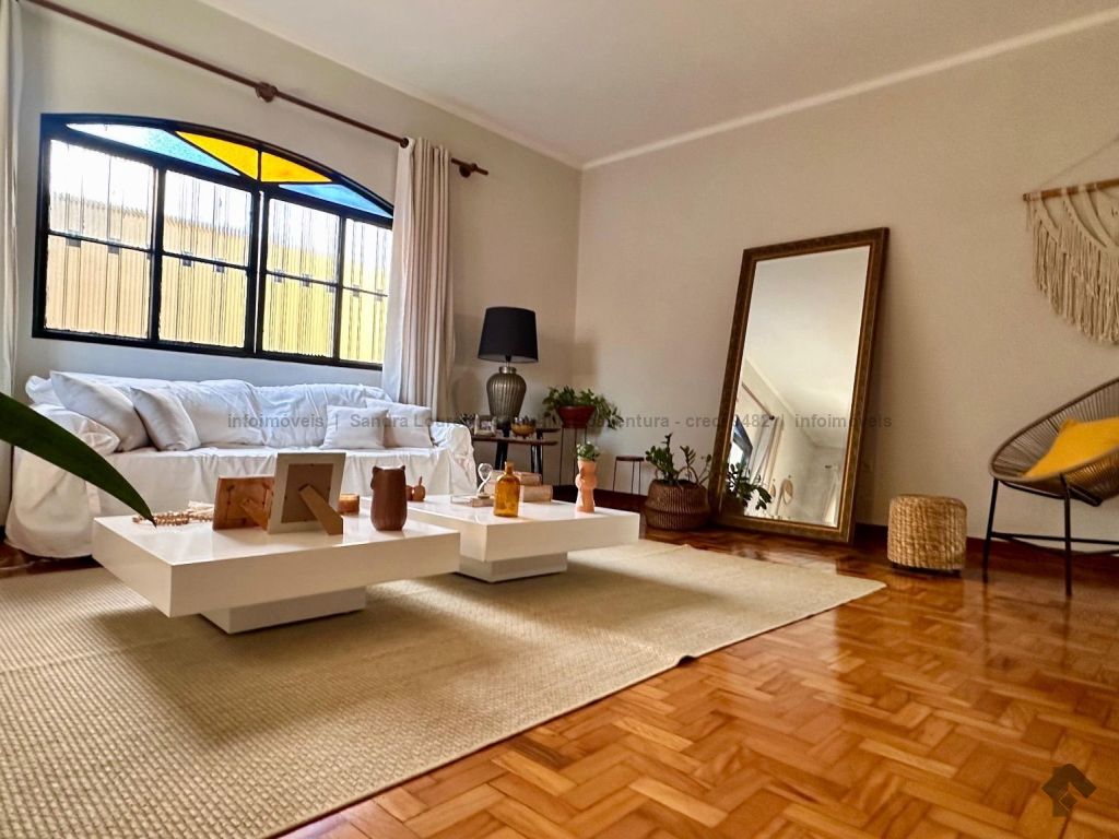 Sobrado em excelente localização. Pavimento superior: escadaria, terraço, living, sala de estar, sala de jantar, circulação, cozinha, 1 banheiro social, 2 dormitórios, 1 suíte e depósito. Pavimento inferior: 3 salas que servem como ponto comercial para escritório ou clínica. Possui uma piscina e uma varanda gourmet.