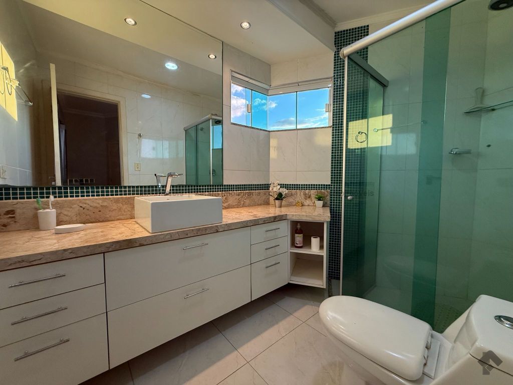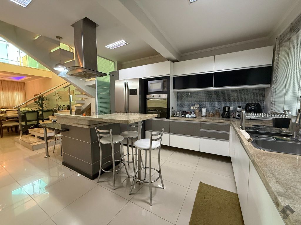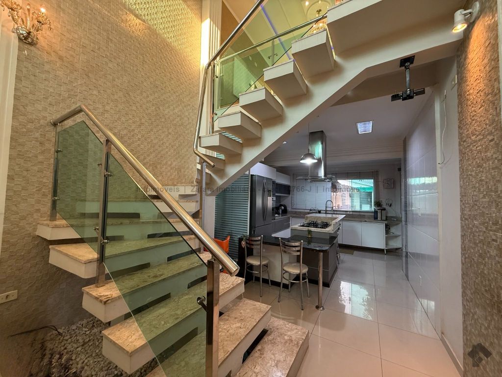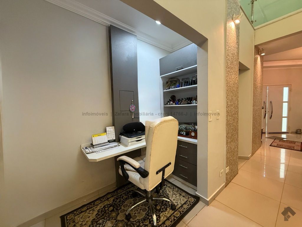 Esse sobrado possui na parte térrea 1 suíte master (quarto, closet, banheiro e banheira), sala de estar, sala de jantar, cozinha, lavabo e escritório, e no 2º piso possui 2 suítes, depósito, sala de TV e duas sacadas. O pé direito do imóvel alto traz conforto e um clima agradável nos ambientes internos. Na edícula, além do espaço de churrasqueira e banheiro social, contamos com 3 quartos e lavanderia. O quintal amplo que divide a edícula e o sobrado é muito convidativo para momentos de lazer tranquilos ao pé das árvores frutíferas que possui este imóvel. O cômodo da edícula serve como uma segunda casa para quem precisa hospedar visitas ou necessita de uma moradia separada para familiares.