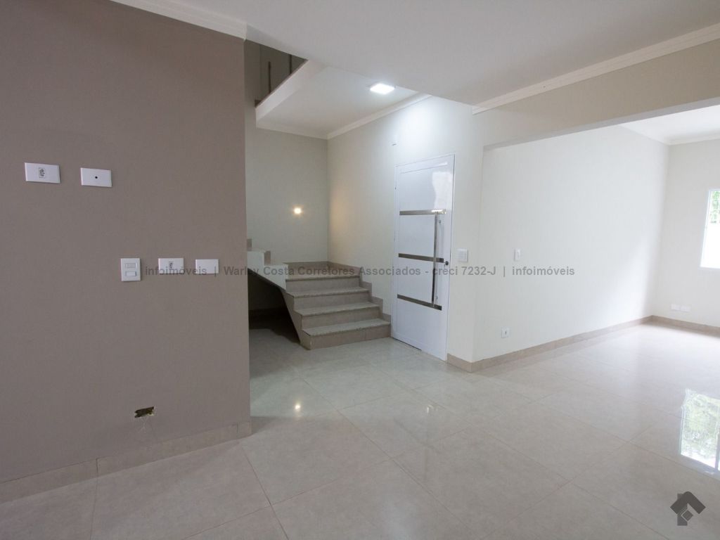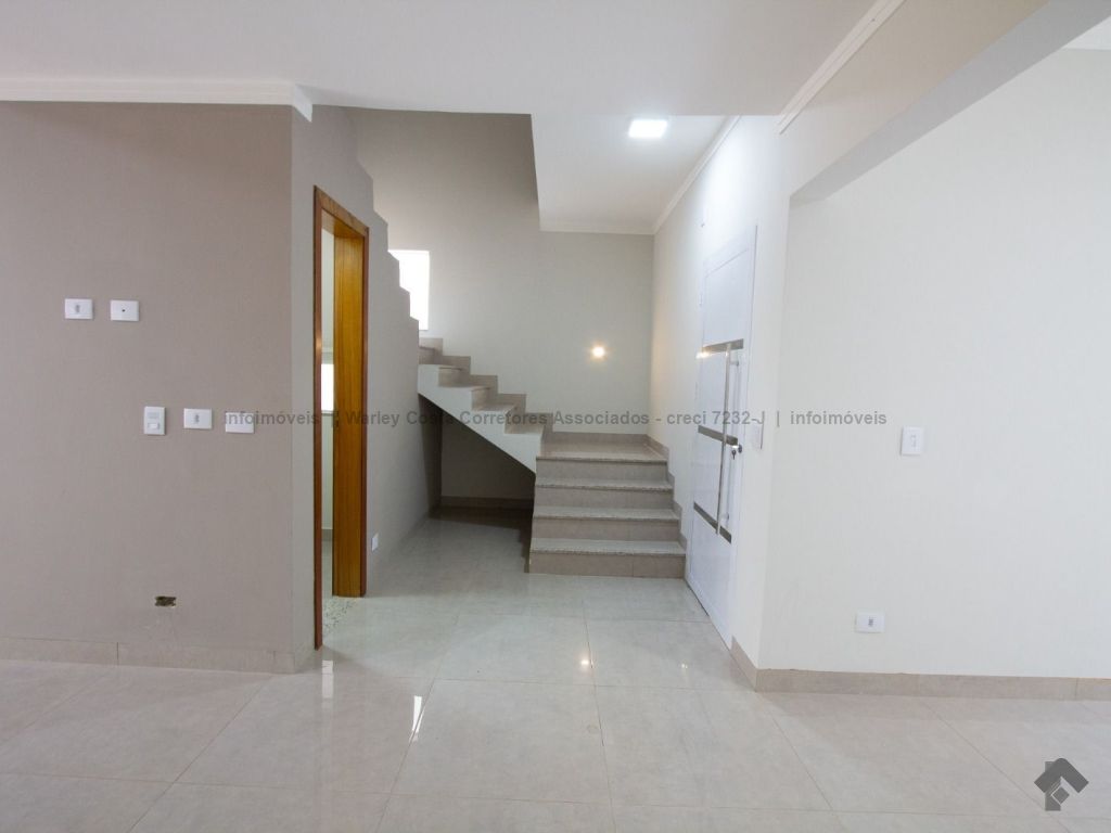 Sobrado belíssimo com 01 suíte com closet e sacada, 02 quartos, 01 banheiro social, hall no andar de cima onde dá para montar um pequeno escritório. Armários planejados na cozinha, despensa e closet. No térreo, temos 01 lavabo, sala privativa, sala de jantar e cozinha, área de serviço com banheiro, espaço gourmet, garagem para até 3 carros pequenos. Portão de elevação, interfone, pré-instalação de ar condicionado em todos os cômodos, fogão cooktop de 5 bocas na cozinha, escada com corrimão de inox.
