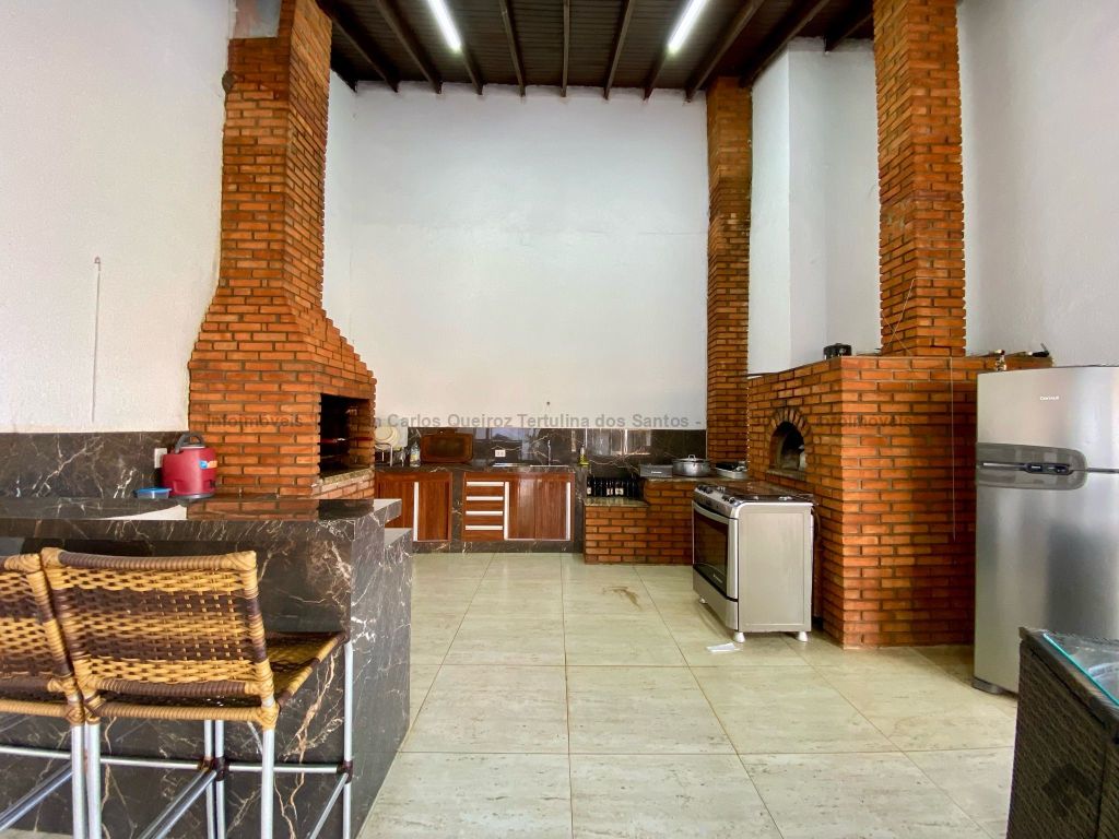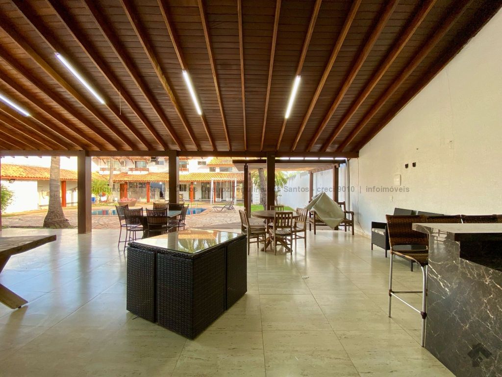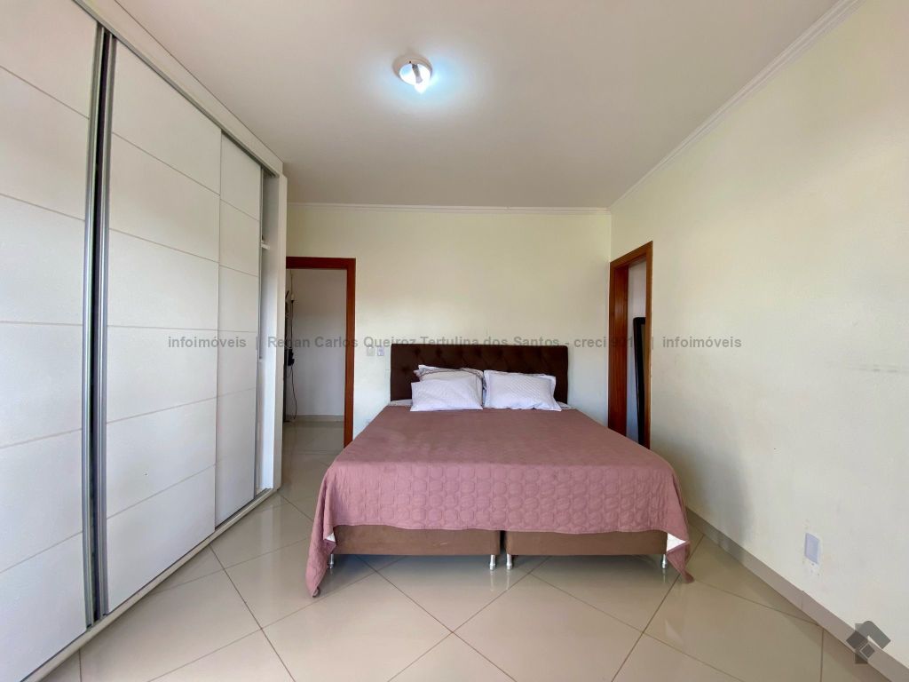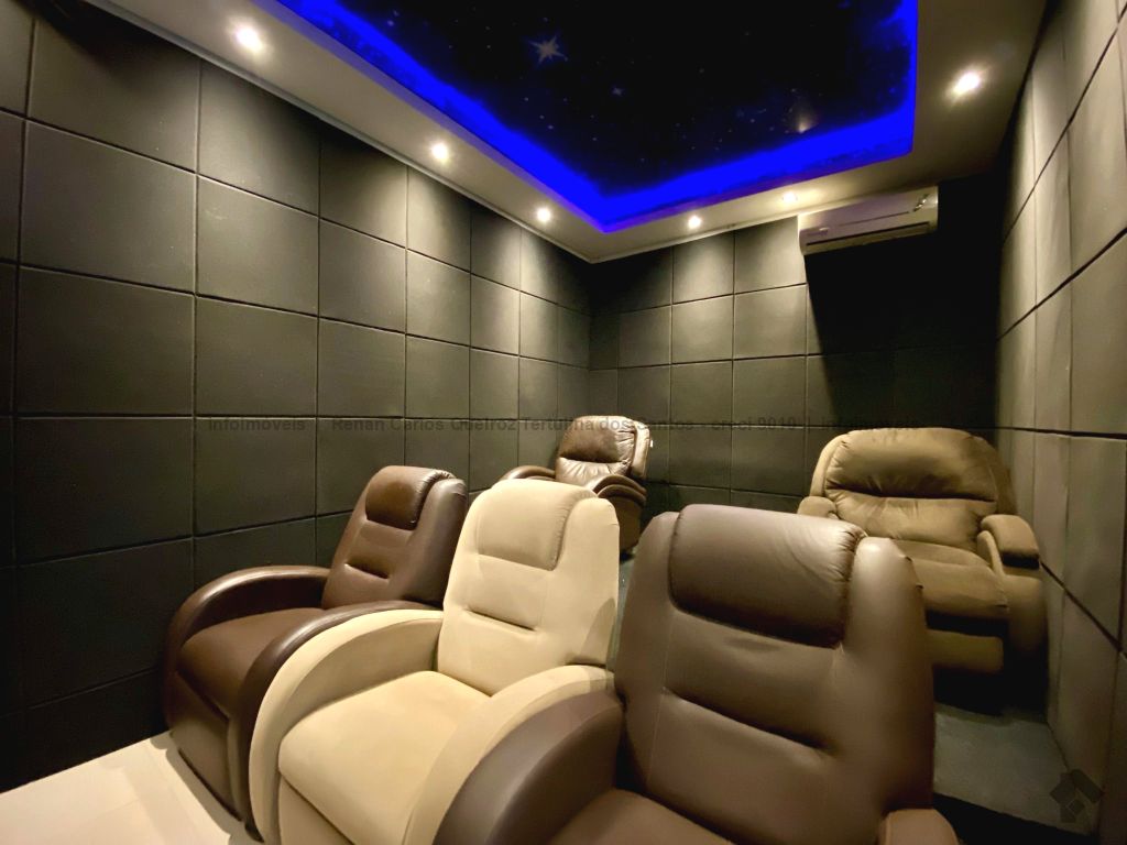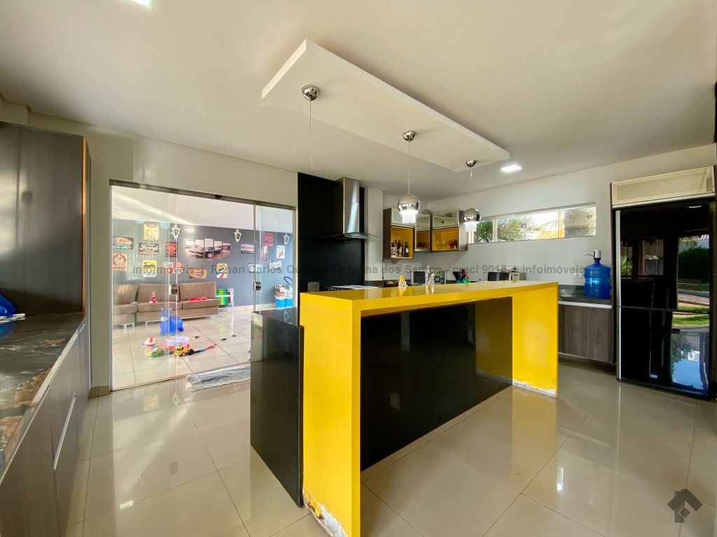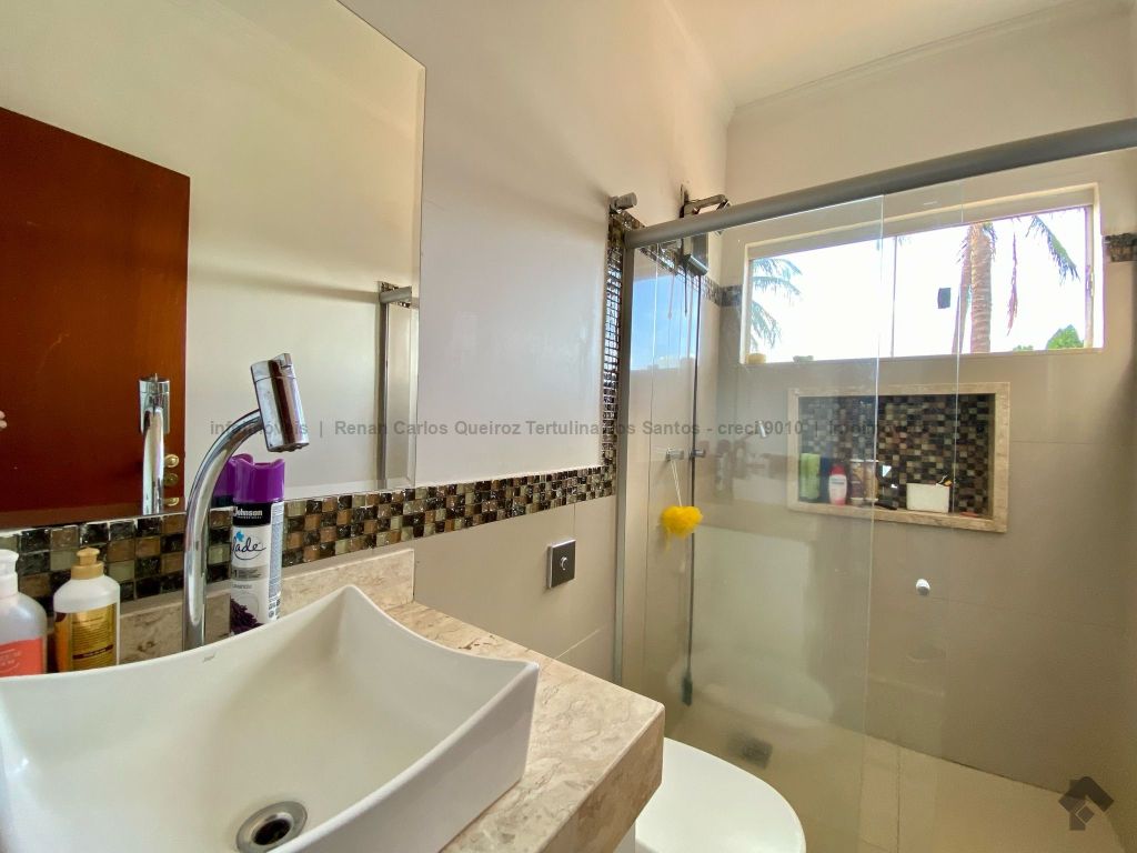 Piso inferior conta com duas suítes uma com banheira. Lavanderia, banheiro. Sala de estar, sala de Tv, sala de jantar, cozinha, lavabo. Espaço gourmet, banheiro, despensa, sala. Piso superior contém: uma sala, 03 suítes com sacada e closet, uma com banheira. Sauna, sala de cinema, piscina, quintal grande, garagem coberta.