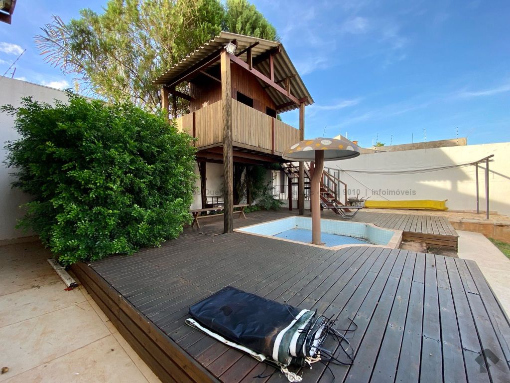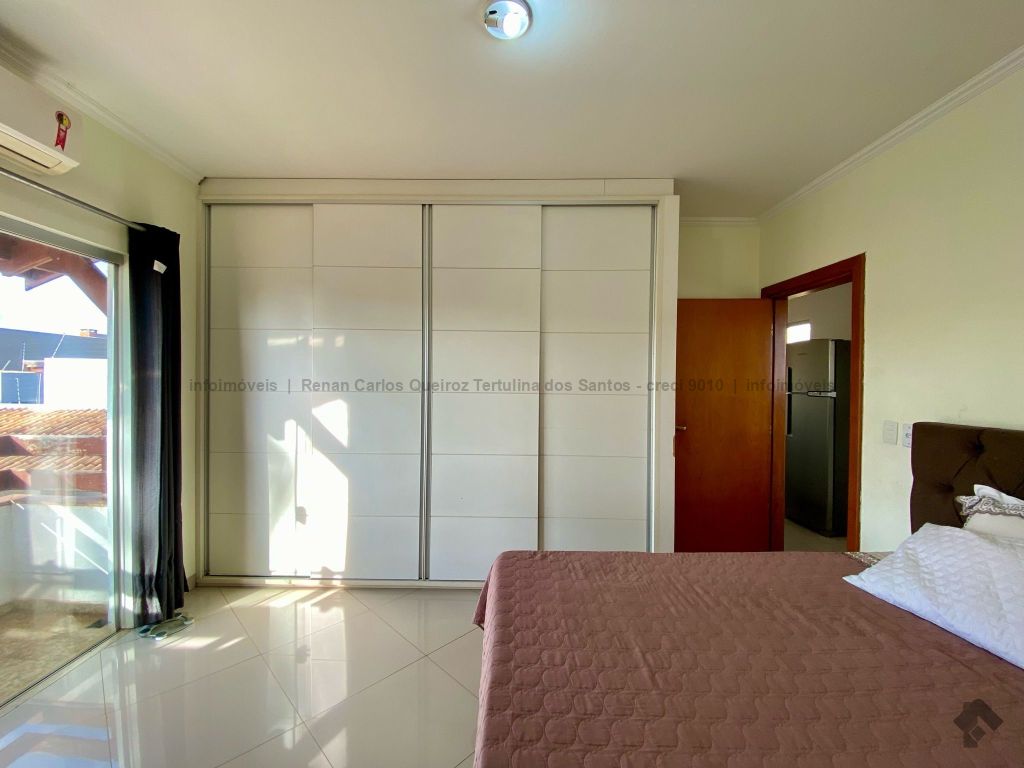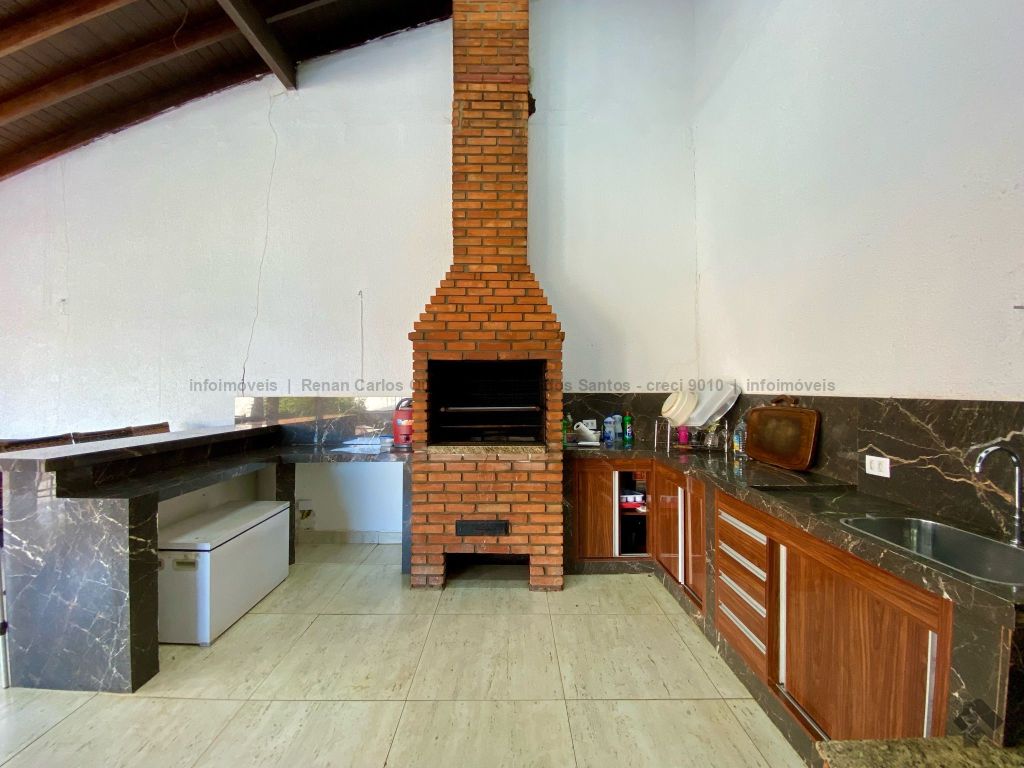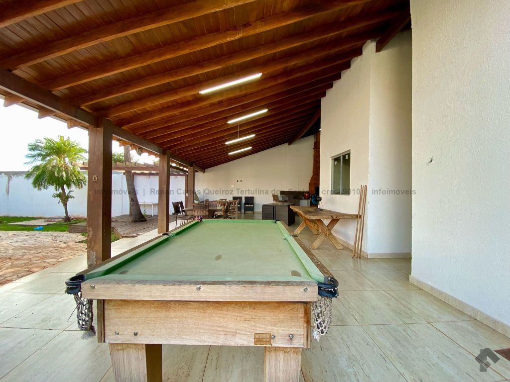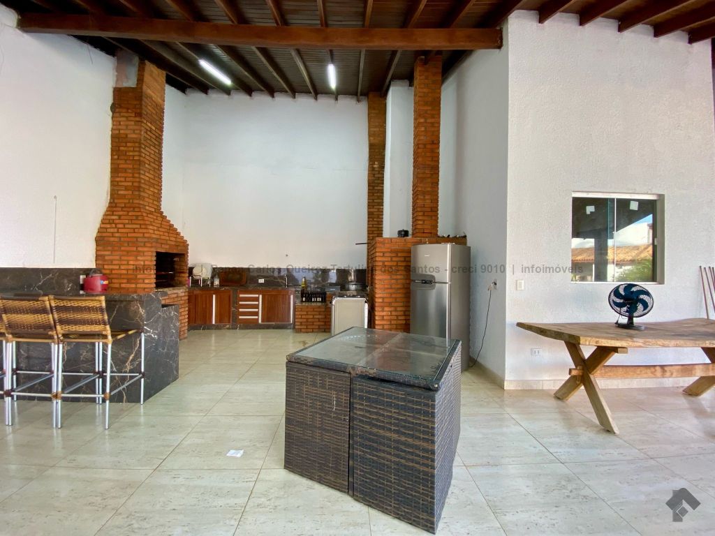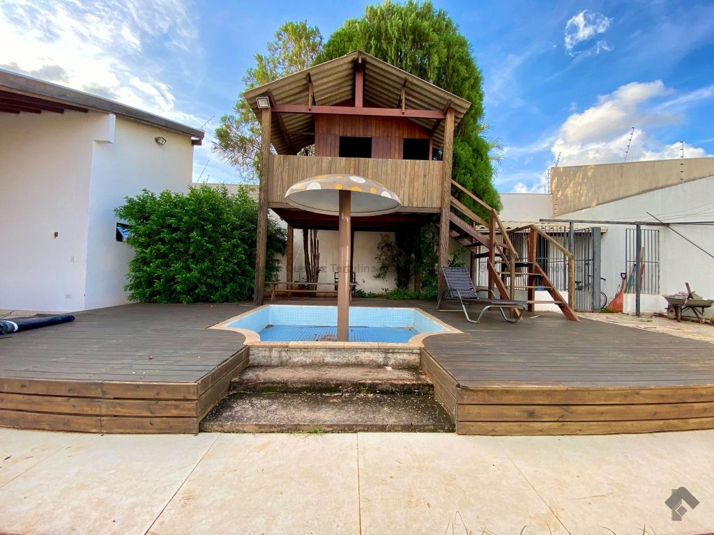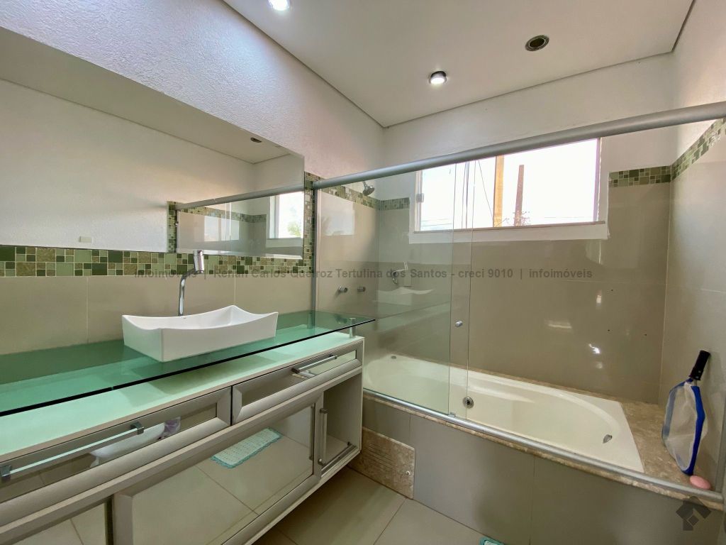 Piso inferior conta com duas suítes uma com banheira. Lavanderia, banheiro. Sala de estar, sala de Tv, sala de jantar, cozinha, lavabo. Espaço gourmet, banheiro, despensa, sala. Piso superior contém: uma sala, 03 suítes com sacada e closet, uma com banheira. Sauna, sala de cinema, piscina, quintal grande, garagem coberta.