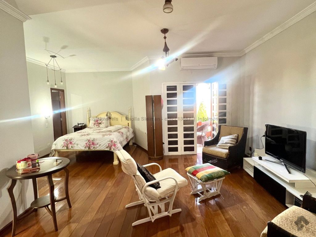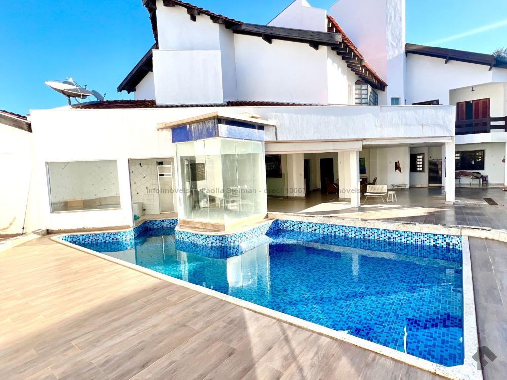 Sobrado excepcional, contém na parte superior uma suíte presidencial com banheiro integrado, dois closets, banheira, escritório e duas sacadas, duas suítes com sacada, sendo uma com closet. No térreo, há uma sala de TV, duas salas de jantar, escritório, hall de entrada, uma sala de estar, jardim de inverno e lavabo. Na parte externa, há academia, piscina integrada com sauna e área gourmet. Aceita permuta, proprietário aberto para negociação.