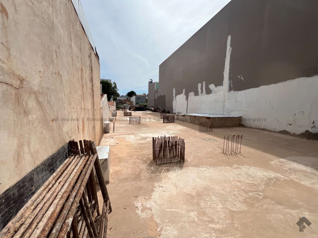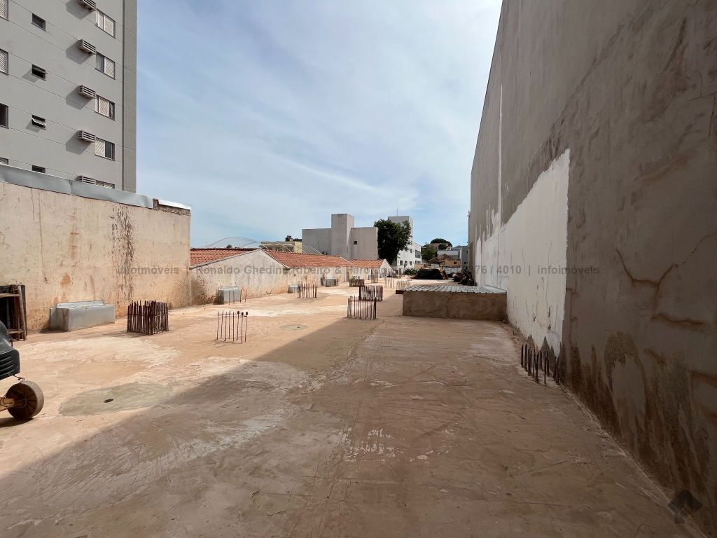 Terreno central com dimensões de 10x60m², com construção iniciada. Possui duas lajes de garagem concluídas, com capacidade para 30 vagas. Obra com fundação pronta para sustentar construção de até 03 andares.