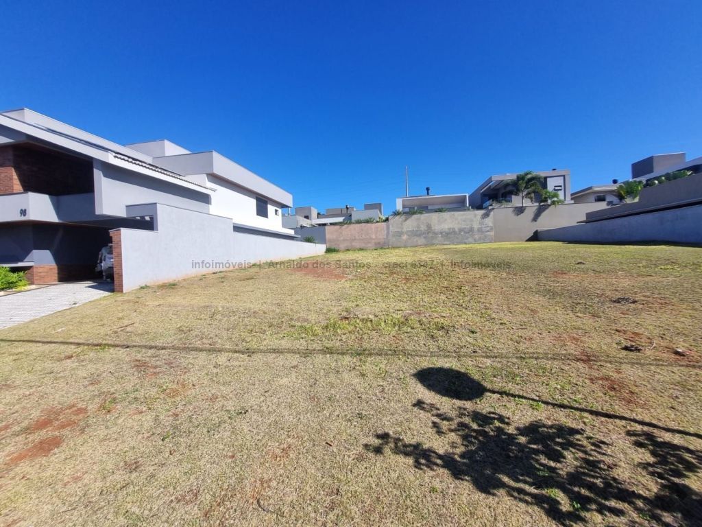 Terreno em condomínio completo, com queda para a rua, murado nos fundos e uma lateral. Medidas 12,30 x 30 m. Condomínio completo com quadras de esporte, academia, brinquedoteca, salão de piscina, quadra de areia e quadra de tênis.