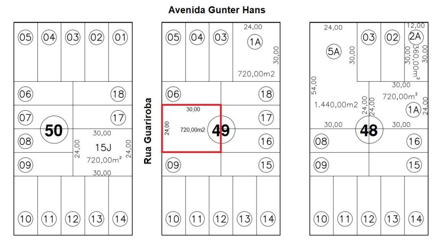 Terreno com testada de 24 m, plano, todo murado, pronto para construir.