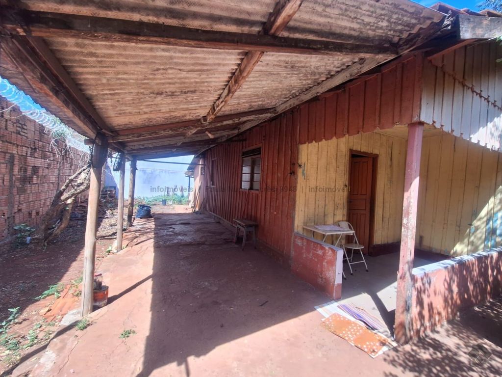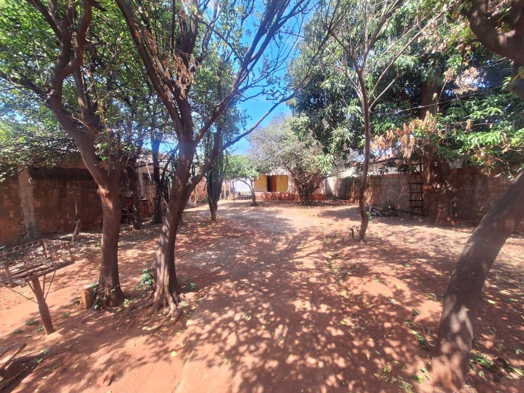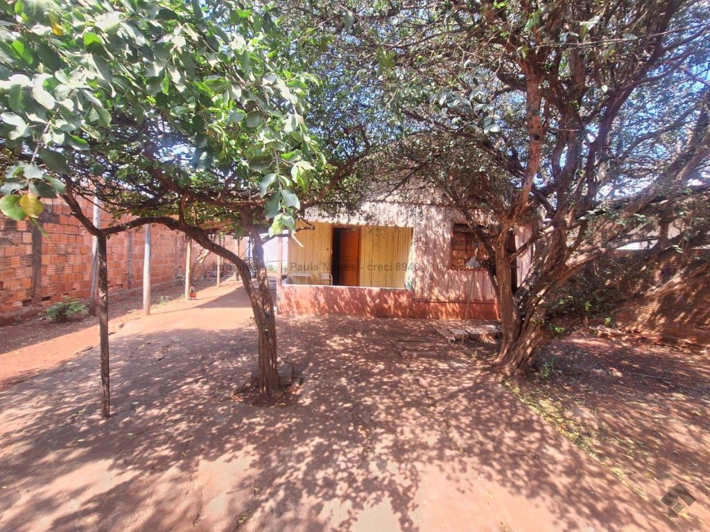 Terreno com uma casa de madeira de 50 m² e árvores frutíferas.