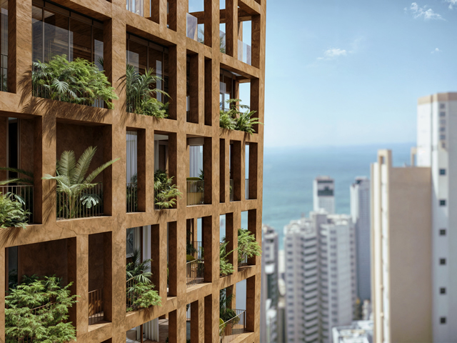 Em um mercado imobiliário onde a busca pelo prédio mais alto ainda dita tendências, o Fischer Group aposta em um caminho oposto: um edifício que simula o comportamento de uma árvore e coloca a saúde, a eficiência e a personalização no centro do projeto. Com apenas 26 unidades residenciais, VGV estimado em R$ 100 milhões, o Auris Residenze, que será construído em Balneário Camboriú (SC), propõe um novo modelo de moradia no segmento de alto padrão. Apelidado de “edifício-árvore”, o projeto tem fachada em concreto pigmentado que muda de cor com o tempo, jardineiras suspensas com irrigação automatizada e brises horizontais inspirados em galhos, que atuam como elementos naturais de regulação térmica e solar. Com essas soluções, a estimativa é de redução de até 52% no uso de água, 26% no consumo de energia elétrica e 42% na necessidade de ar-condicionado. Além disso, o empreendimento terá certificações internacionais como WELL, focada no bem-estar do morador, e LEED, voltada à eficiência energética e sustentabilidade ambiental.